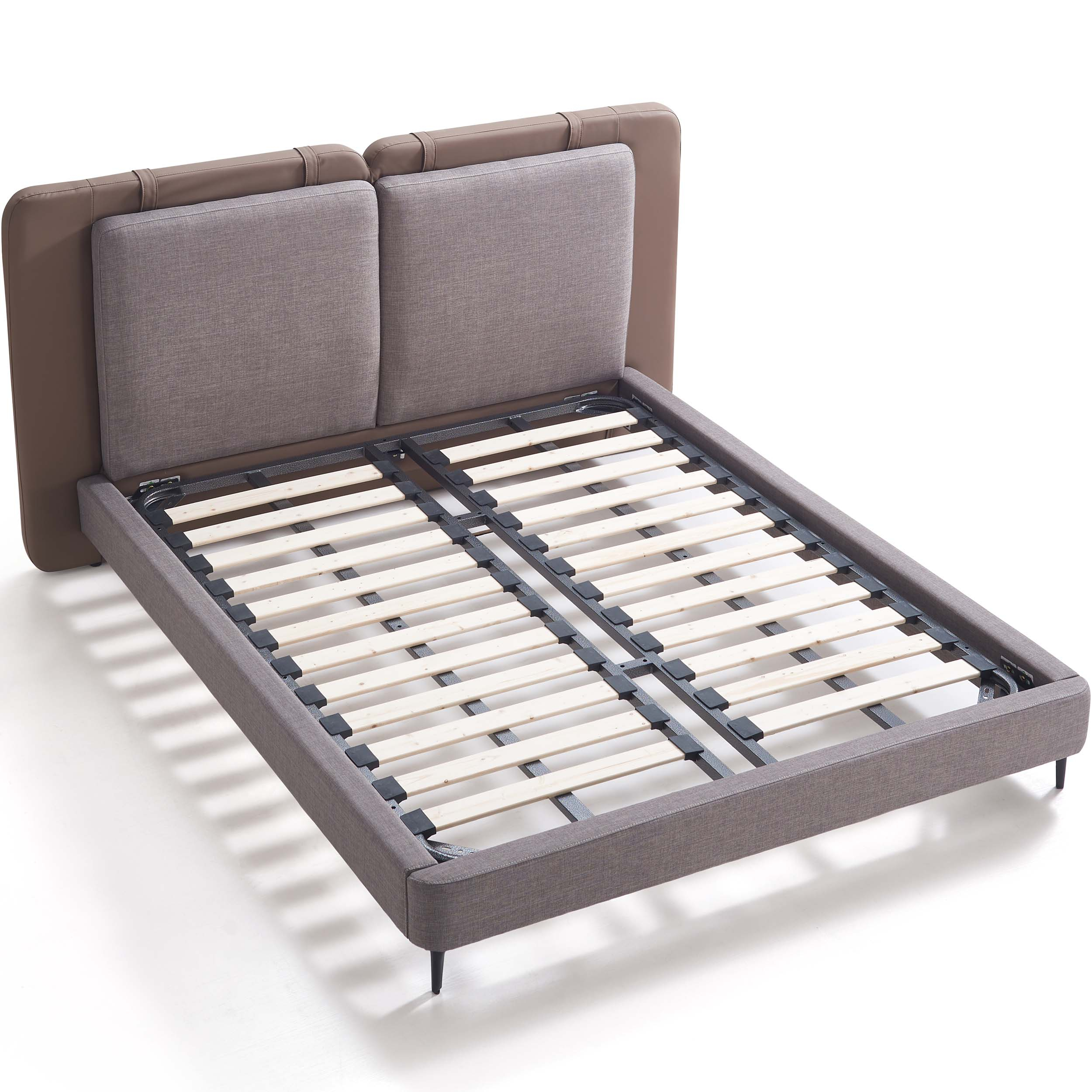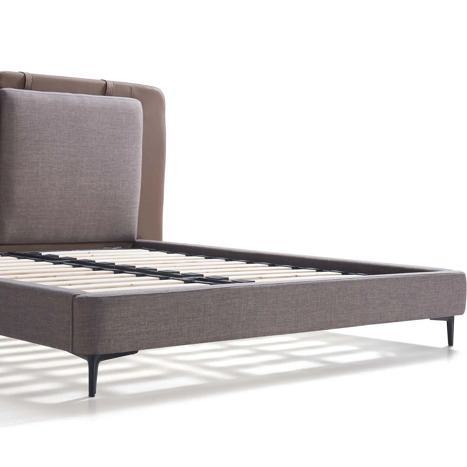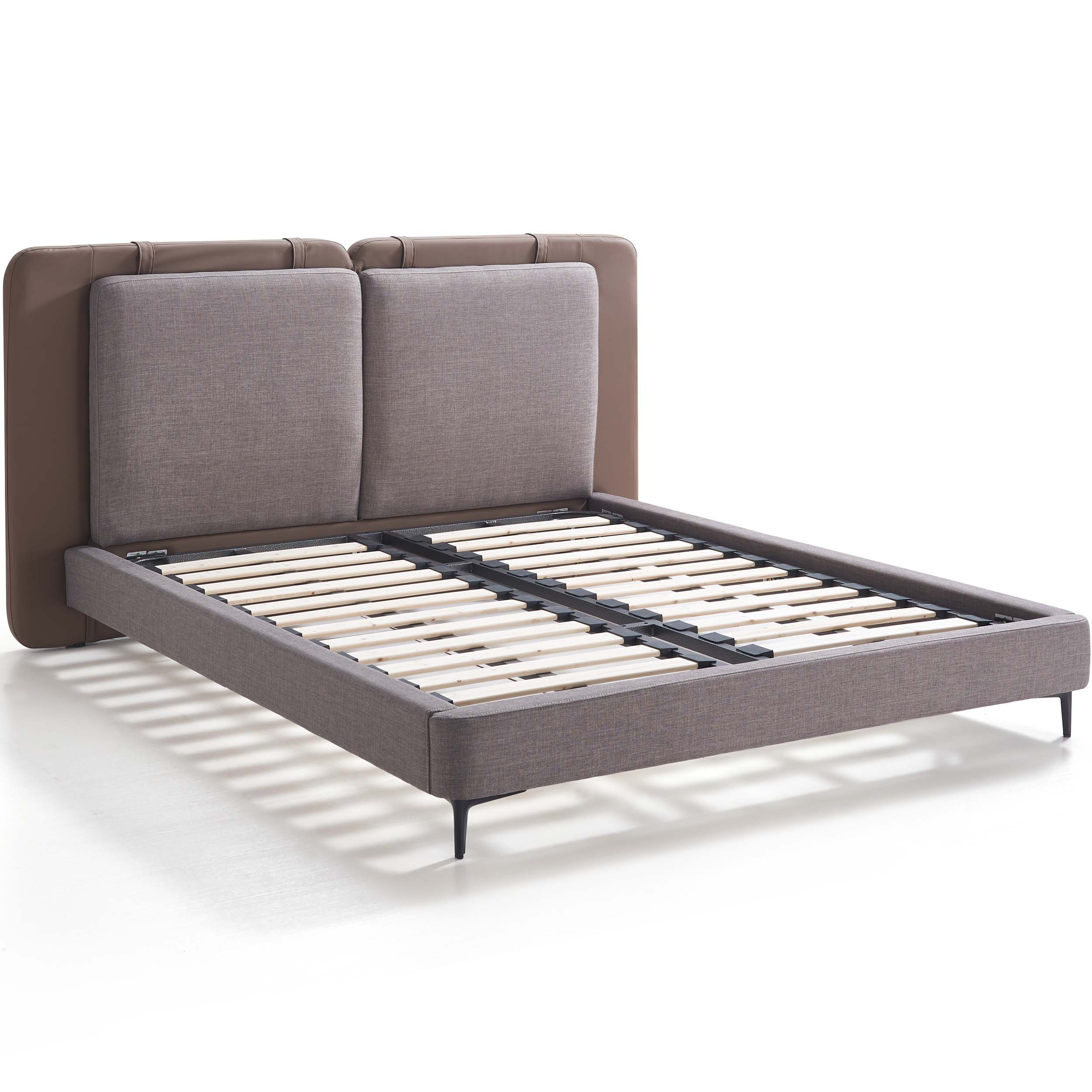 Built with a solid wood inner frame and cushioned with thick foam padding, Adaliz promises both durability and comfort. The slatted wooden base is reinforced with a metal outer frame for added stability and airflow. Elevated metal legs make floor cleaning a breeze while giving the bed a modern touch.