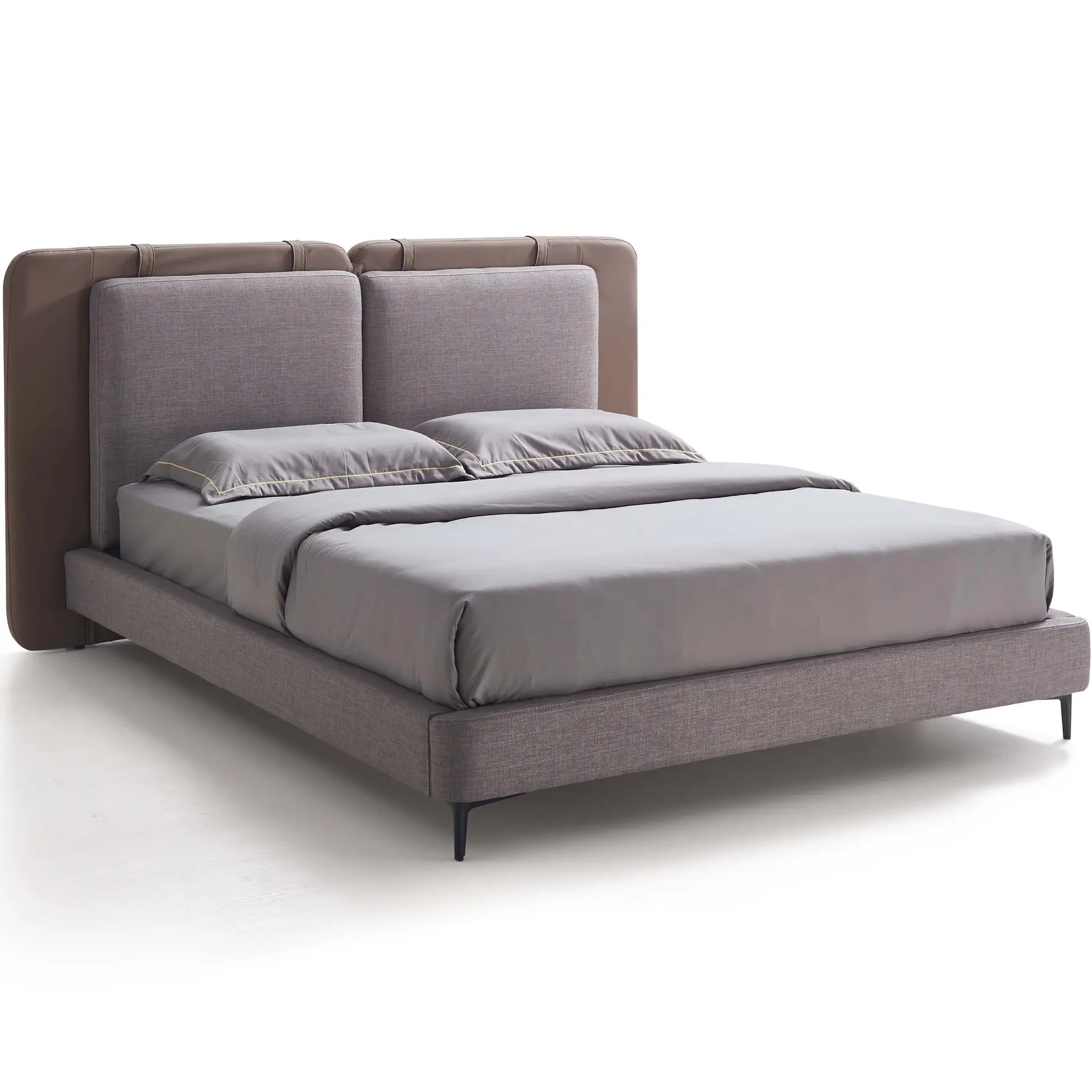 Experience plush comfort and standout design with the Adaliz Luxe Bedframe. Featuring a unique double headboard in faux leather and fabric, durable slatted base, and matching pedestals, this bed combines modern aesthetics with practical comfort. Available in Queen and King sizes and multiple colors.