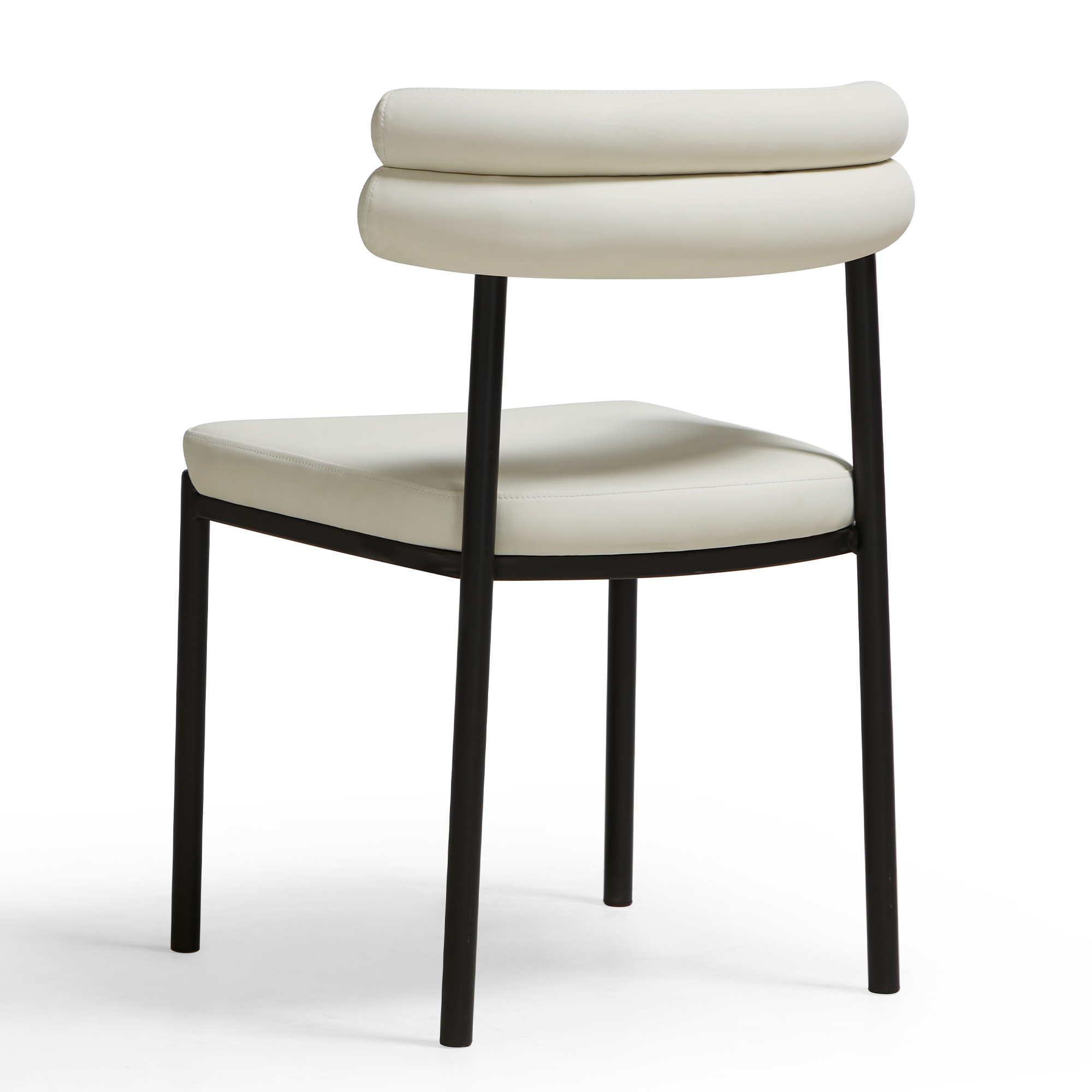 Designed for comfort, the seat and backrest are filled with high-density polyurethane foam, while the gently curved backrest provides soft lumbar support. The armless design adds flexibility and makes it easy to slide under dining tables.
