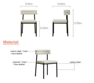 Supported by a sturdy carbon steel frame, the chair holds up to 95kg and stays stable during use. Ideal for contemporary dining spaces, it offers quality, style, and function in one compact piece.