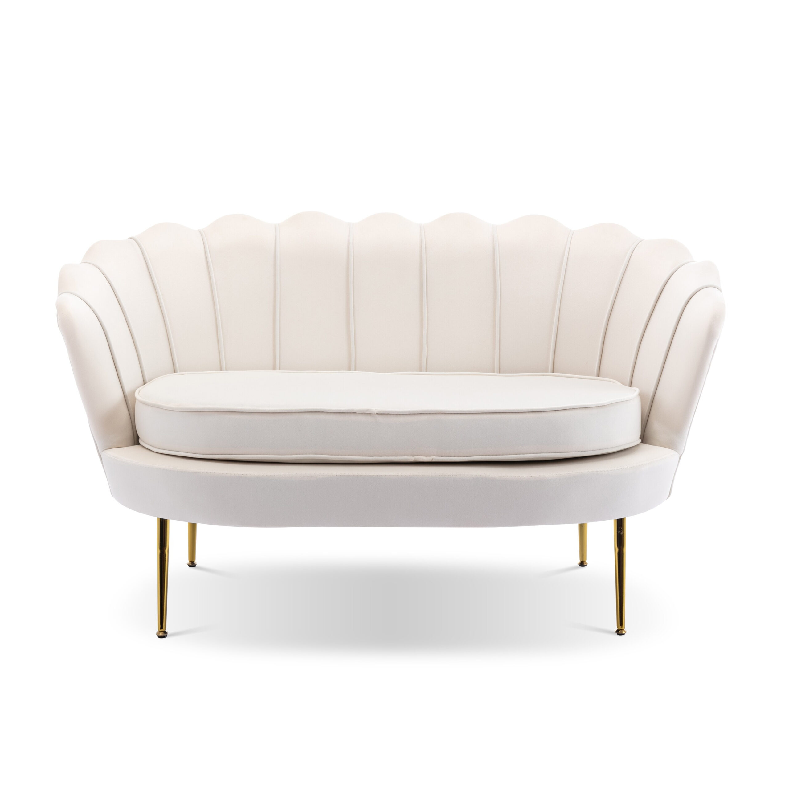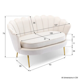 The Ariel 2-Seater Velvet Sofa is a statement piece that blends classic elegance with modern sophistication. Its unique shell-inspired backrest, paired with smooth and soft velvet upholstery, evokes the luxurious charm of Art Deco design. Supported by sleek stainless steel legs in a radiant chrome gold finish, this sofa exudes both style and durability.