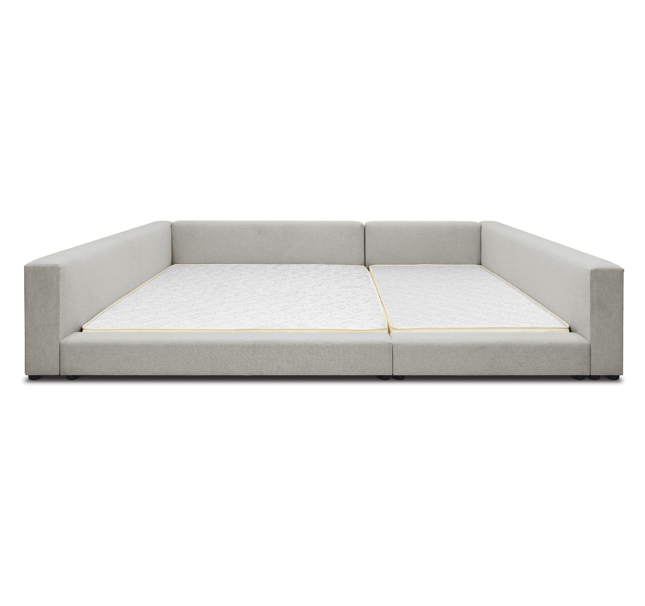 It’s literally sleeping with mattresses on the ground but looks cosy; Getting 2 base to build up some height, think with the base it would look elegant.