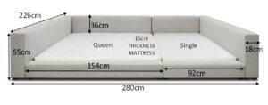 • Fits queen mattress (190×152 cm) and single (190×91 cm)