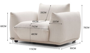 • Seat Height: 40 cm | Seat Width: 71 cm | Seat Depth: 65 cm