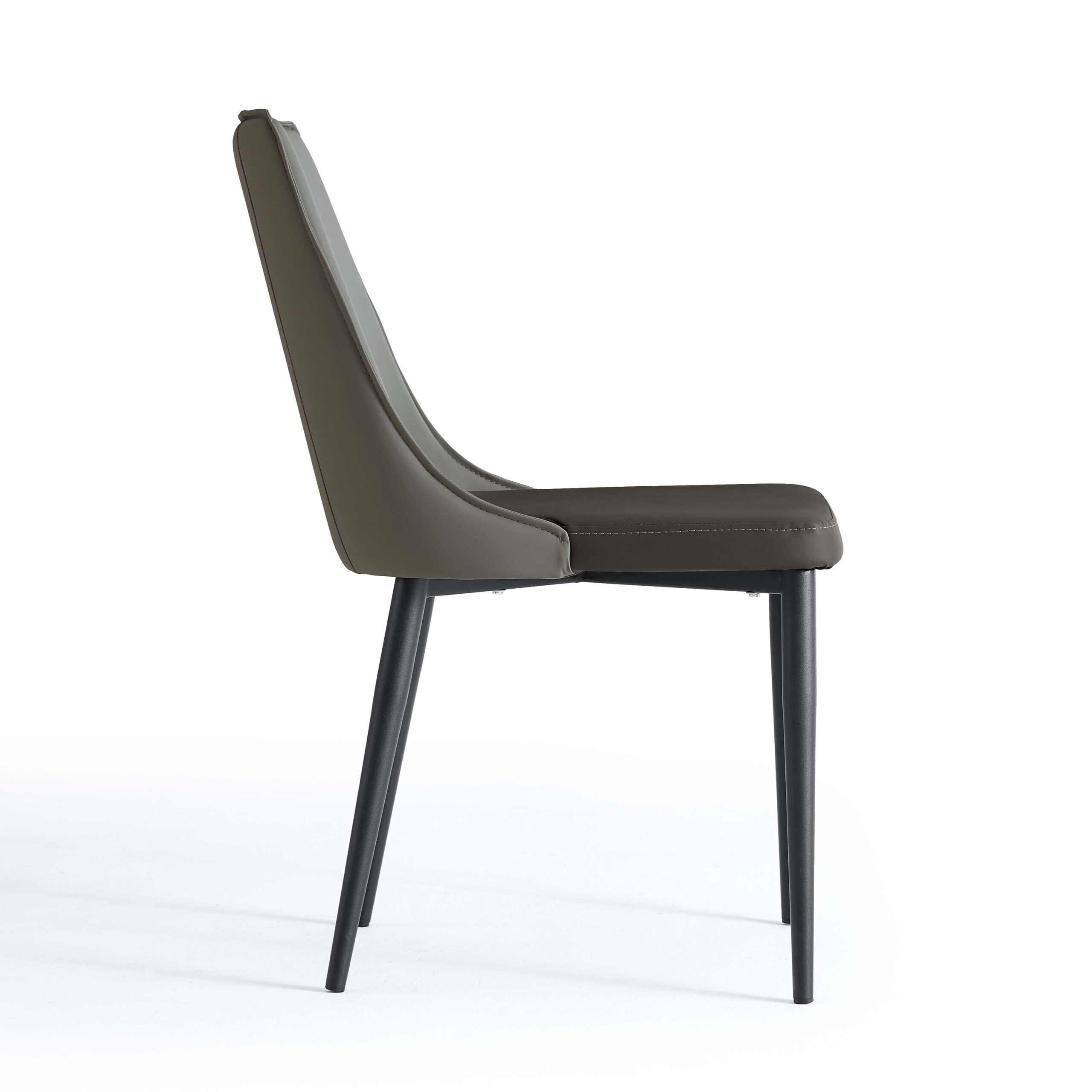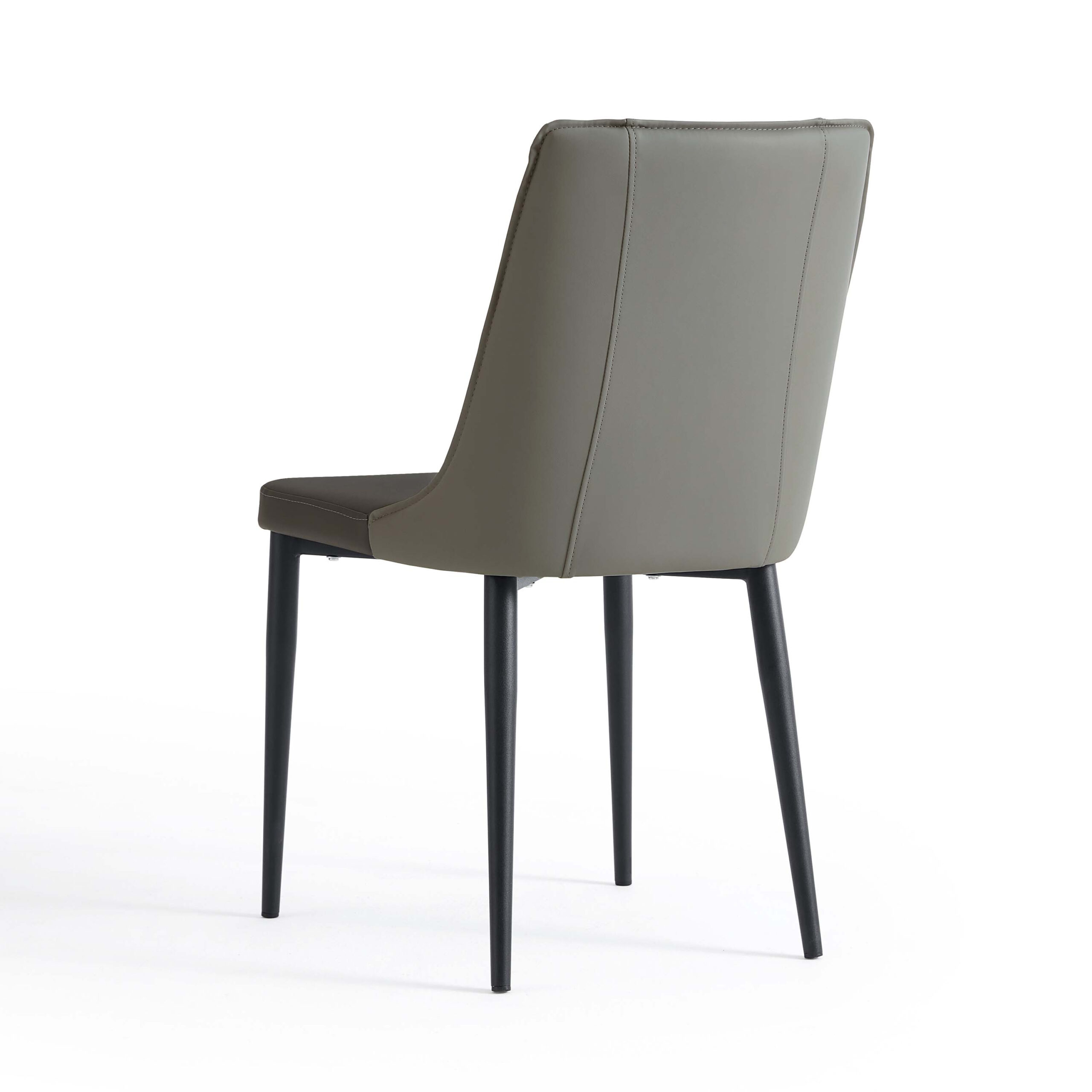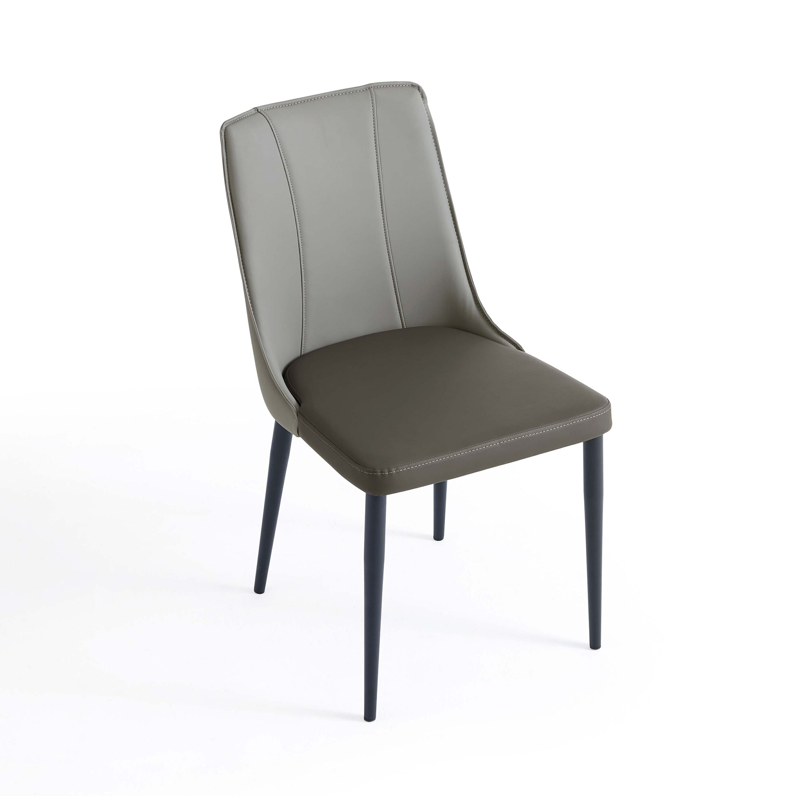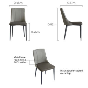 The Dena Armless Dining Chair in Grey blends comfort with modern simplicity. Upholstered in smooth PVC faux leather and filled with foam, it offers a soft seat and a slightly curved backrest for added support during long meals. The chair is built on a strong metal base with black powder-coated legs, holding up to 95kg.
