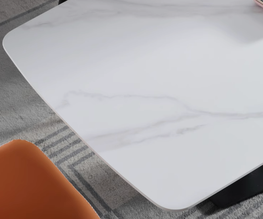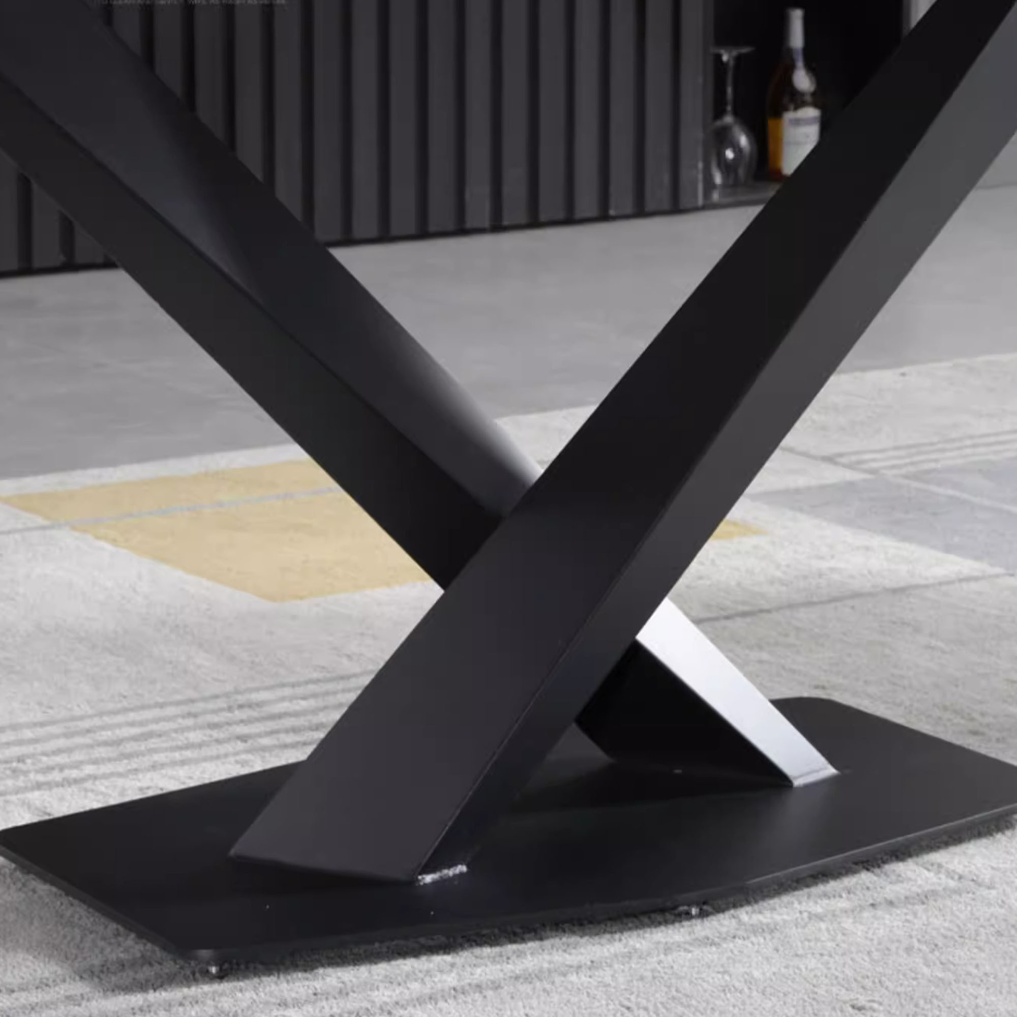 The Janneth Sintered Stone Dining Table is a striking blend of durability, style, and modern geometry. Featuring a matte sintered stone top with natural feathery marbling, each piece is uniquely crafted from real minerals—resistant to heat, stains, scratches, and chemicals.
