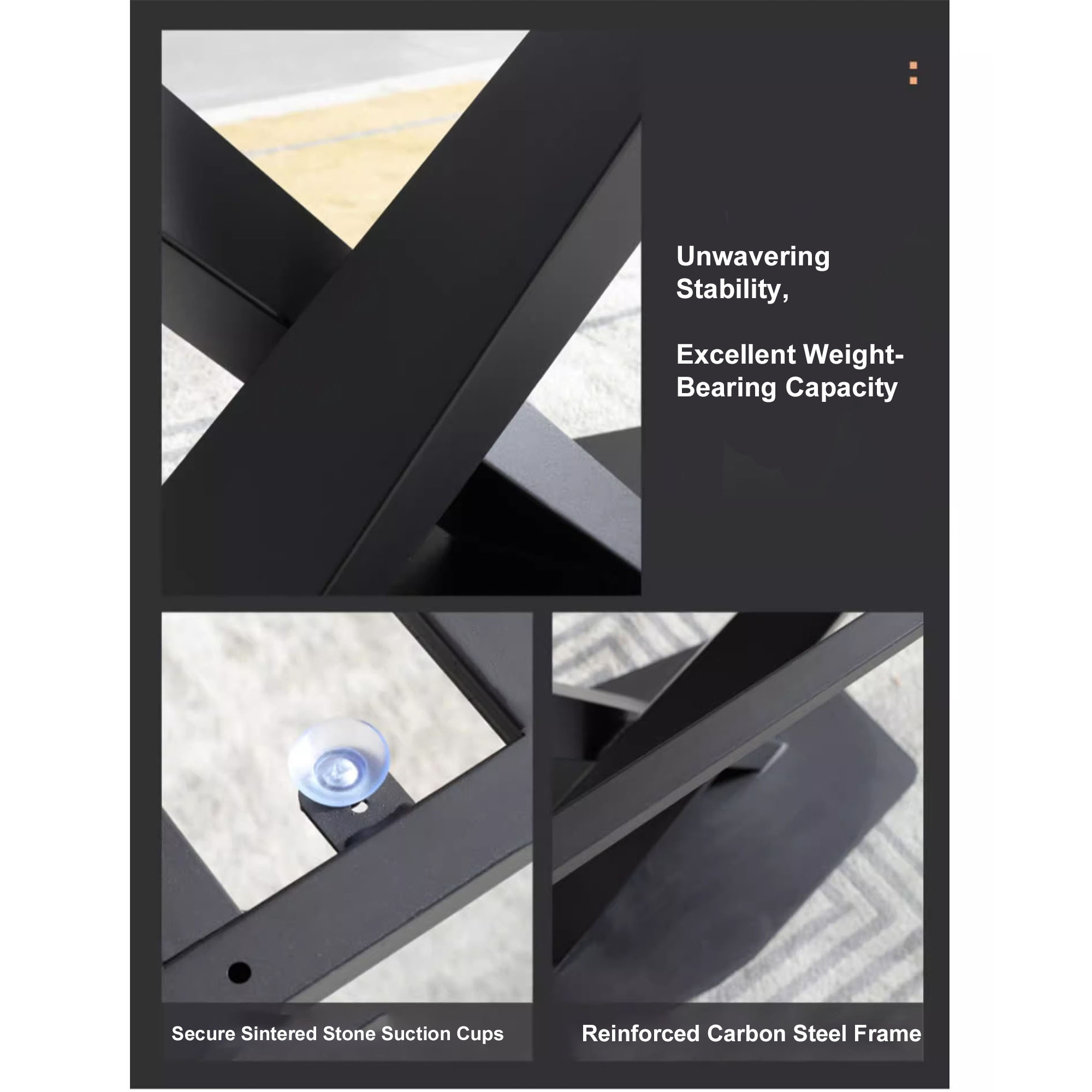 Its bold X-shaped frame, constructed from A3 carbon steel, delivers exceptional strength and contemporary flair. Discreet suction cups securely anchor the tabletop, while rounded edges offer added safety for households with children.