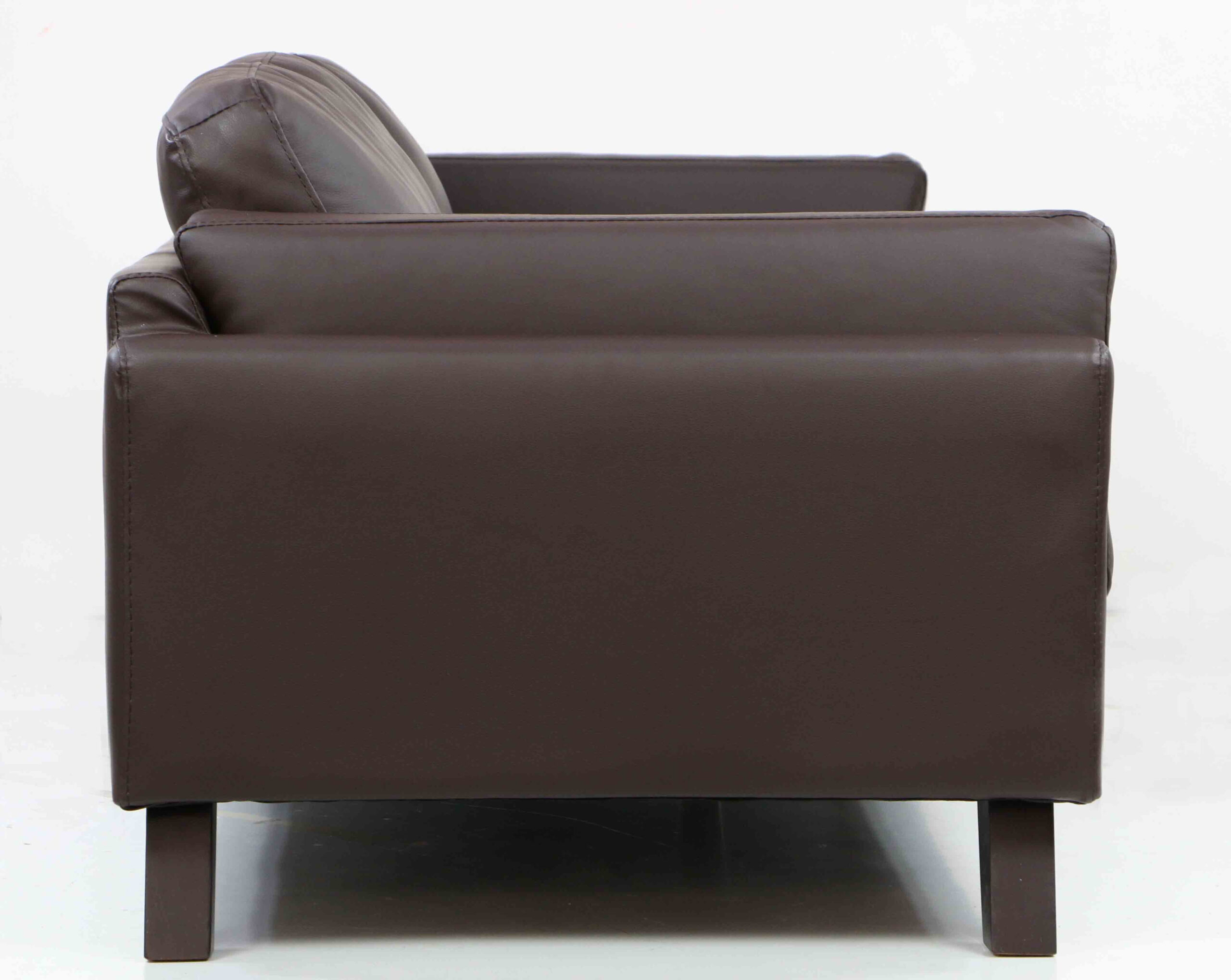 A sleek and stylish 3-seater sofa featuring luxurious glossed synthetic leather upholstery, a natural wood frame, and plush foam cushioning for a comfortable seating experience.