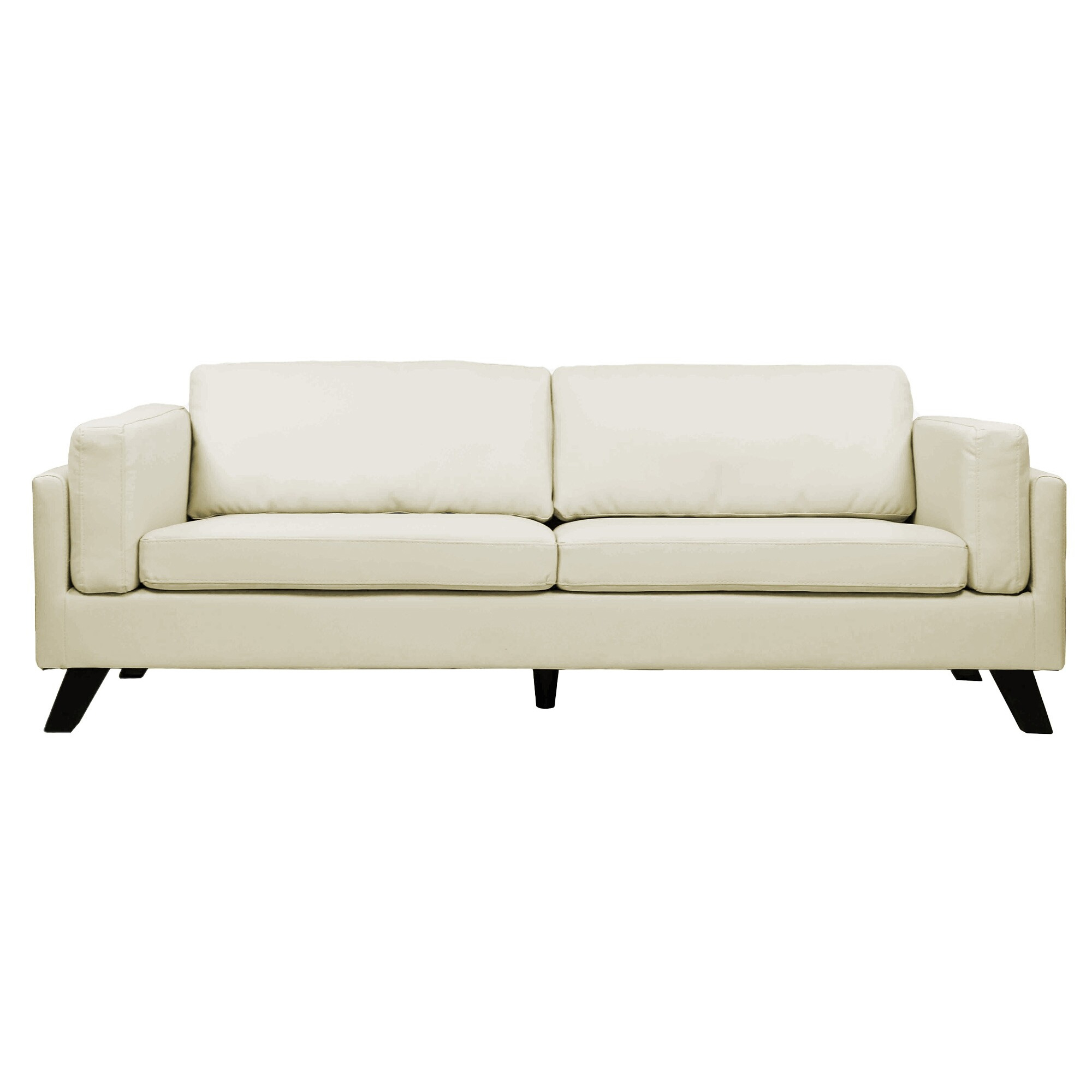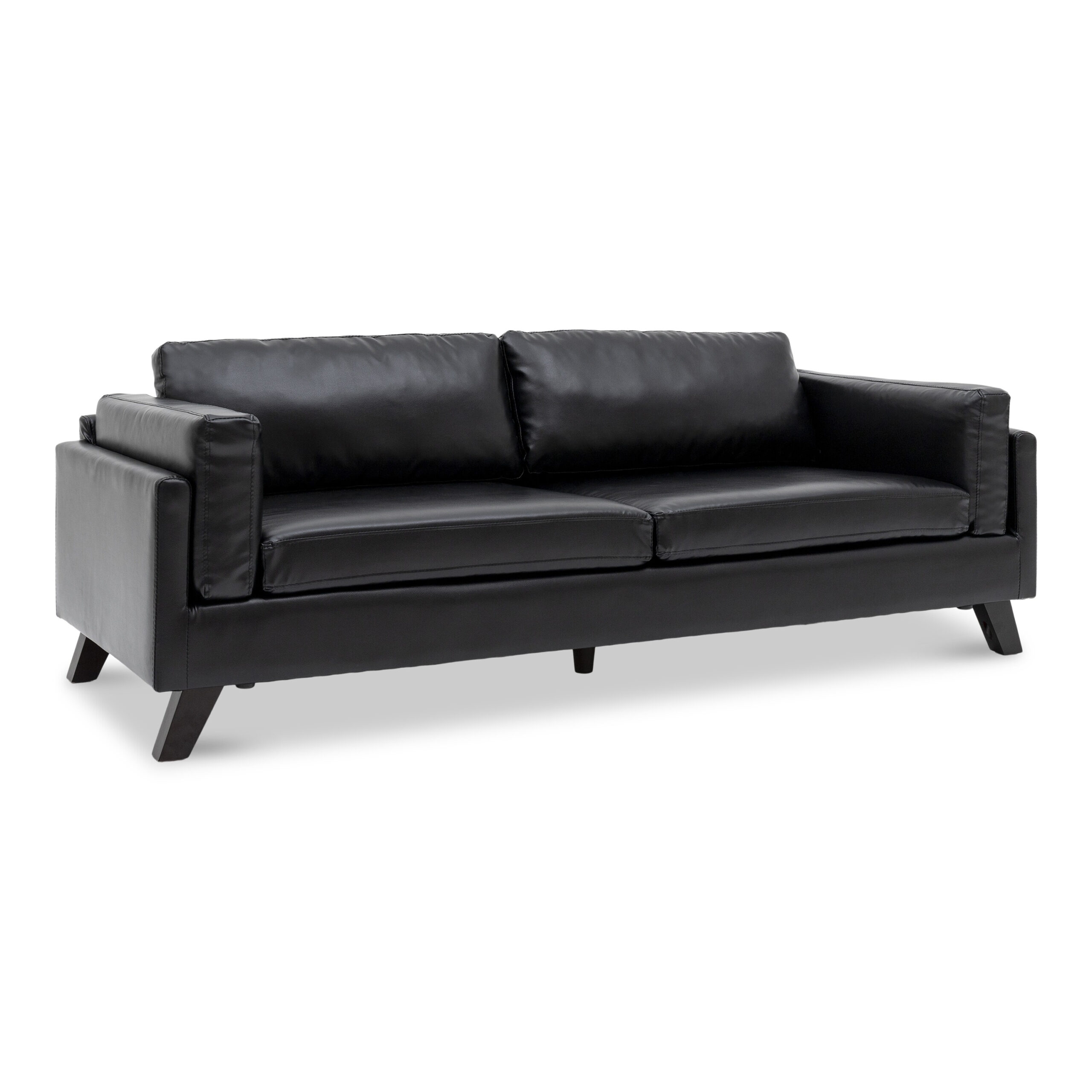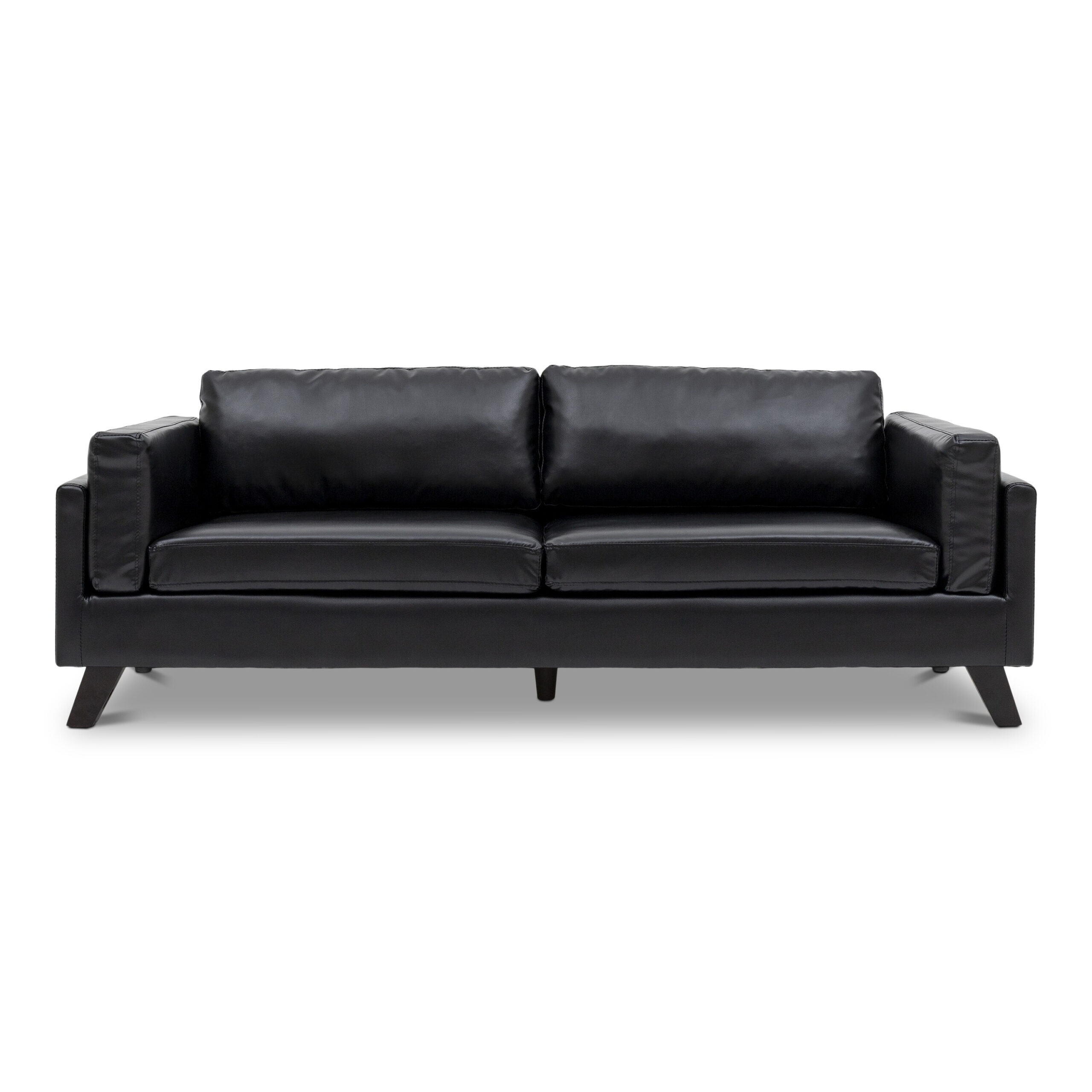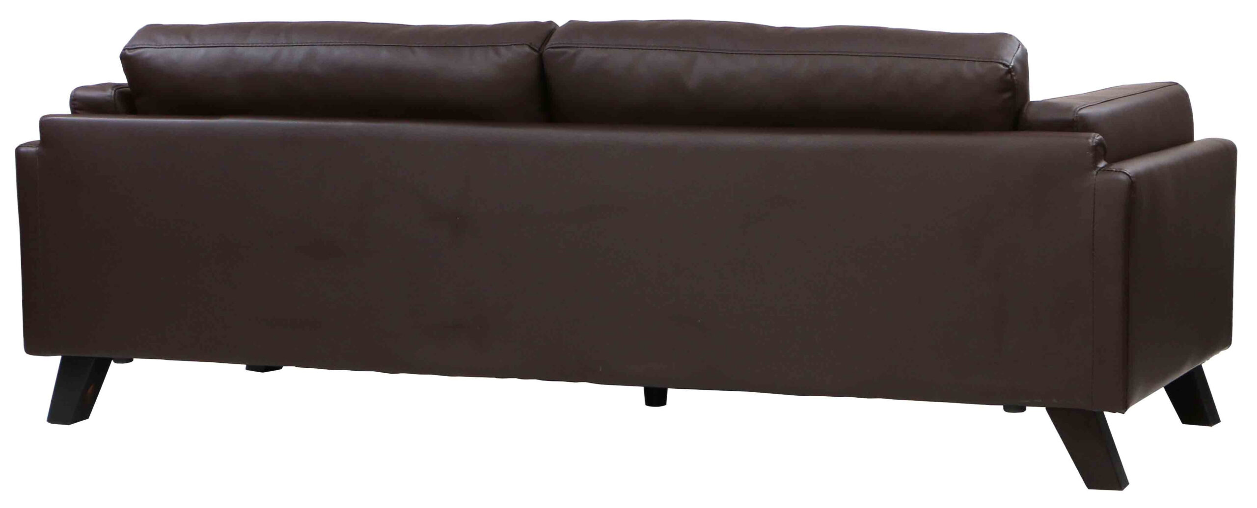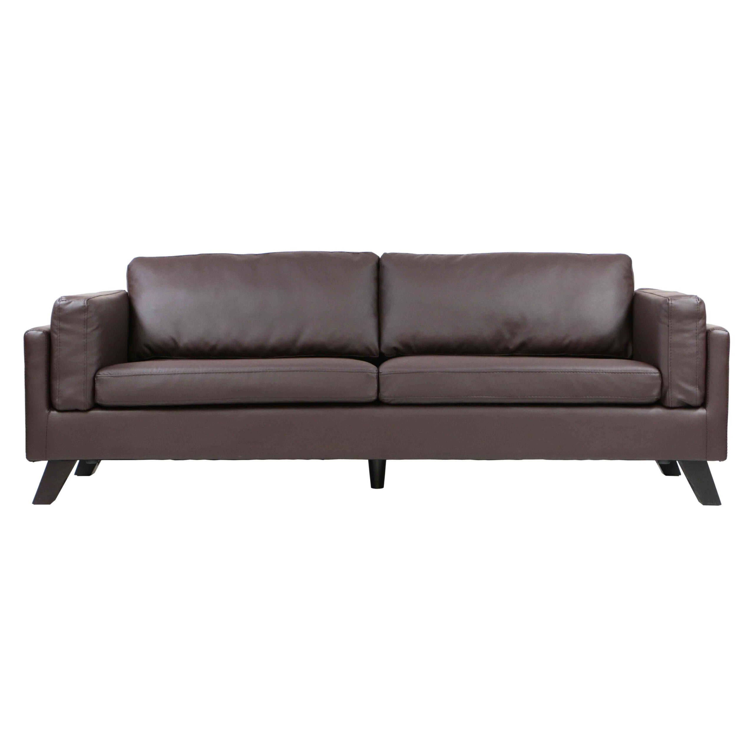 The Kazuki 3-Seater Faux Leather Sofa blends modern sophistication with timeless comfort. Crafted with a sturdy natural wood frame and upholstered in high-quality glossed synthetic leather, this sofa exudes elegance while ensuring durability. The foam-cushioned seat and backrest, combined with tensioned webbing seat support, provide a plush yet supportive seating experience. Designed with tinted natural wood legs set at a stylish angle, the Kazuki Sofa adds a refined touch to any living space. Its removable cushions enhance convenience, making maintenance a breeze. Whether for a contemporary or classic home, this 3-seater settee remains a stylish and functional choice.