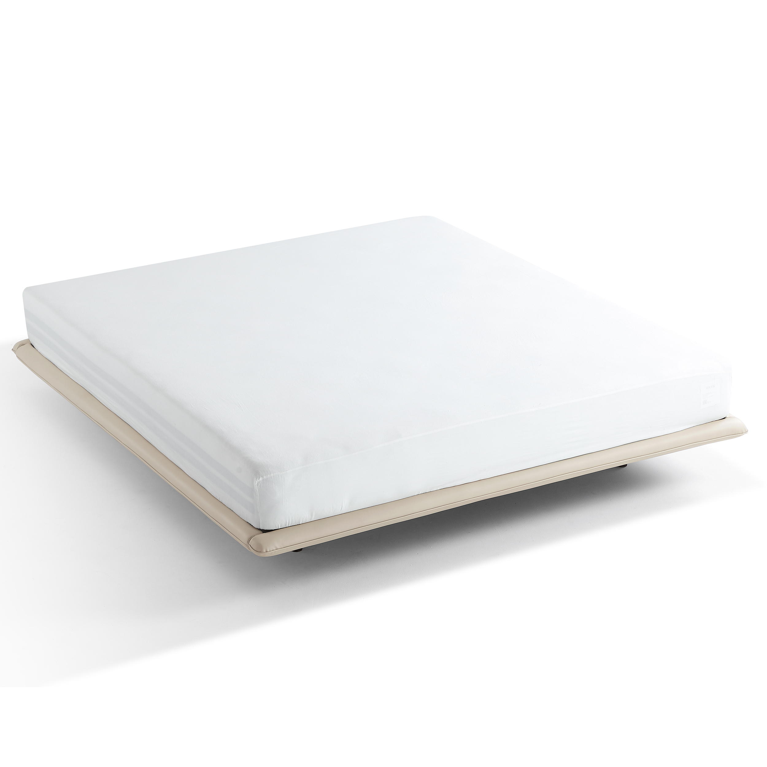 The Lawton Faux Leather Divan Bed Frame is a modern, minimalist addition to any bedroom. Upholstered in soft greige faux leather, it features clean lines and medium foam-padded divan sides for a subtle touch of comfort. The headboard is unpadded for a sleek, streamlined look.