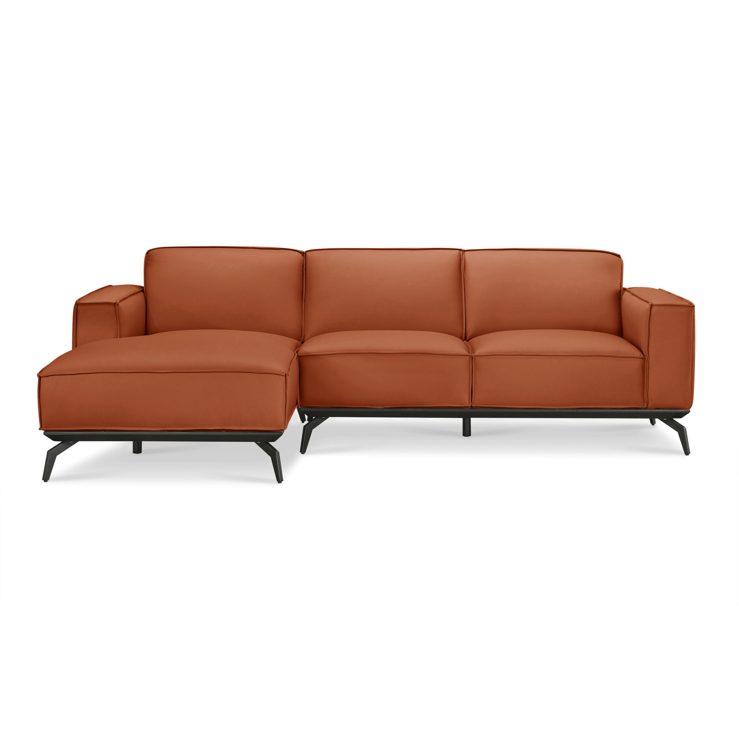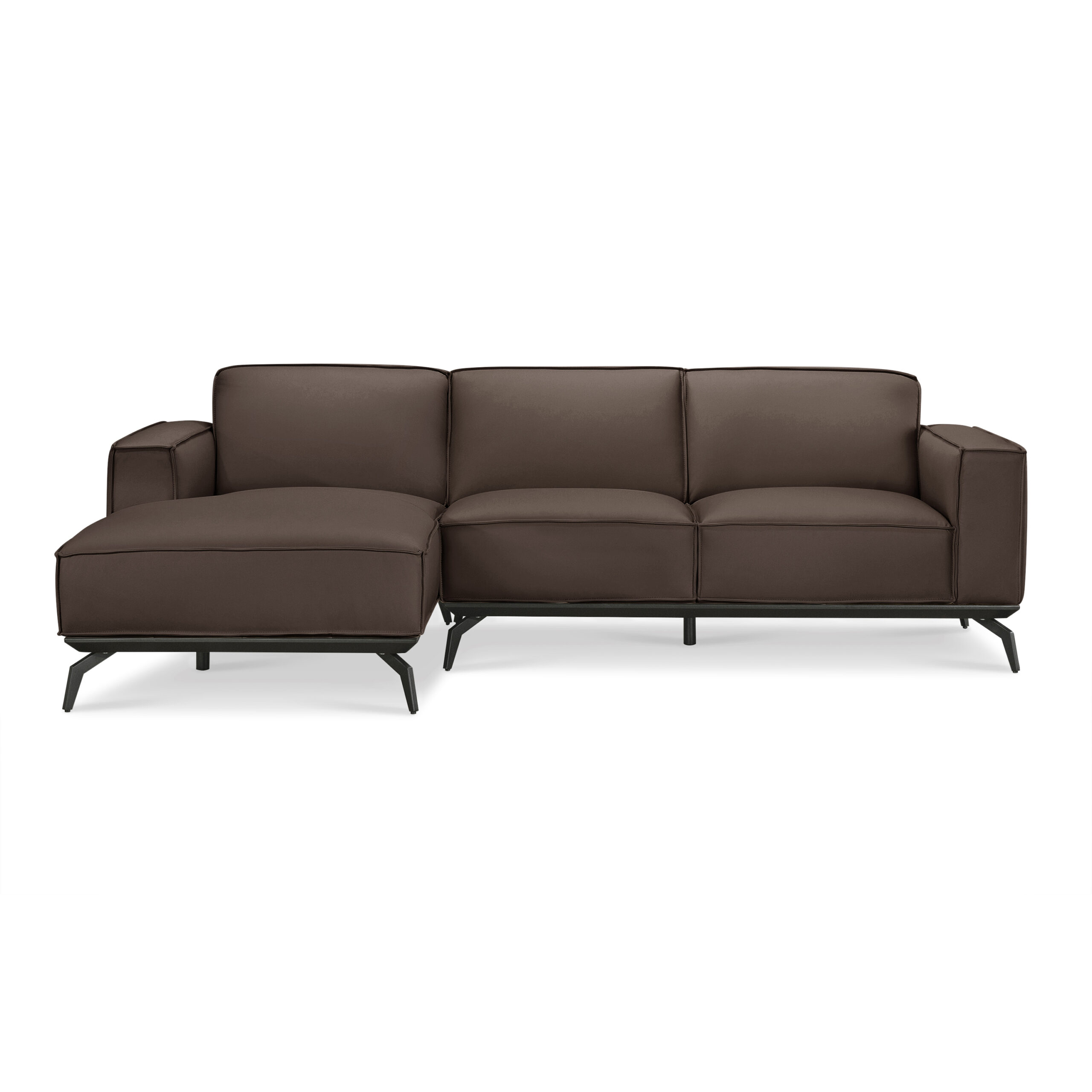 The Mateus Full Leather L-Shape Sofa blends modern design with timeless luxury, crafted to elevate your living space. Upholstered in premium Sophistique top-grain leather, this sofa features a soft, natural grain and a durable, easy-to-clean protective finish. Over time, the leather develops a rich patina, adding unique character to every piece.
