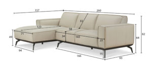 Depth: 93 cm (sofa), 157 cm (chaise)