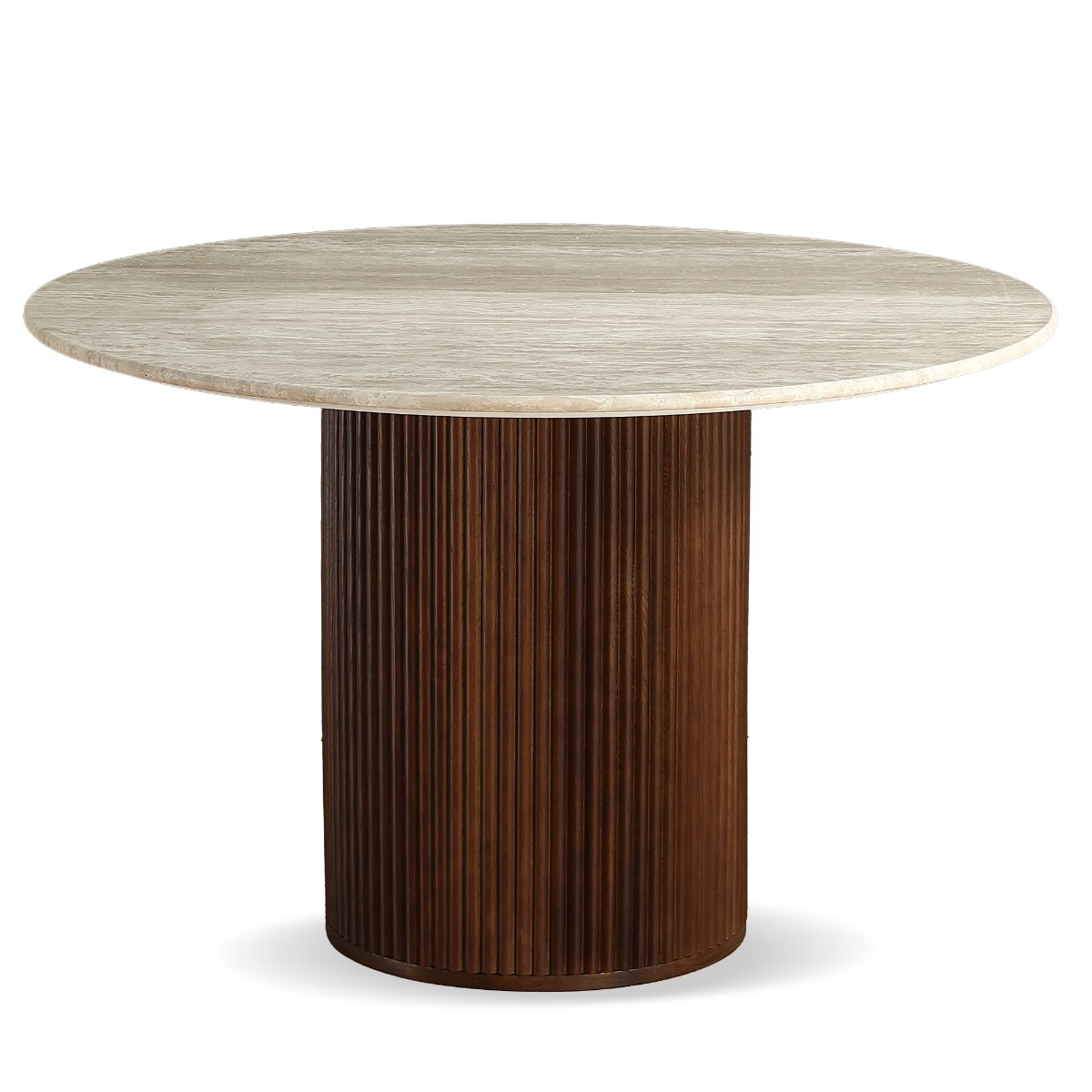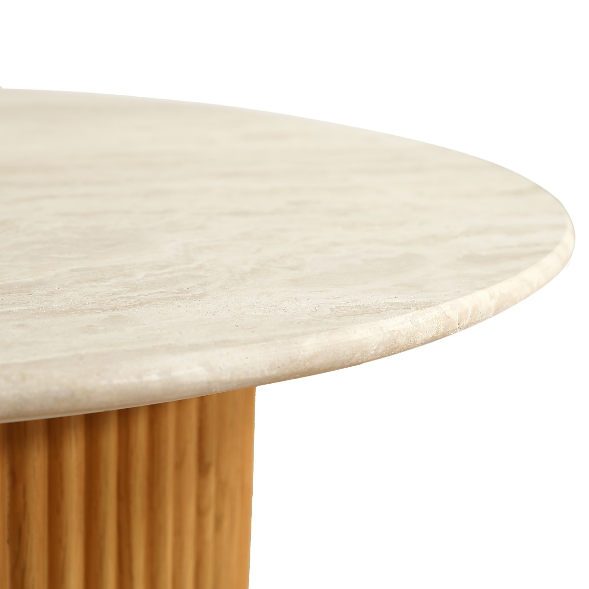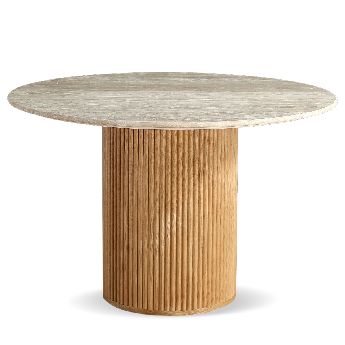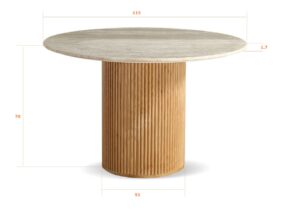 The Oliva 1.1M Round Dining Table brings natural elegance and timeless appeal to your dining space. Crafted from 100% natural travertine with a 17mm honed (semi-filled) finish, the tabletop showcases unique textures and earthy tones—no two tables are the same.
