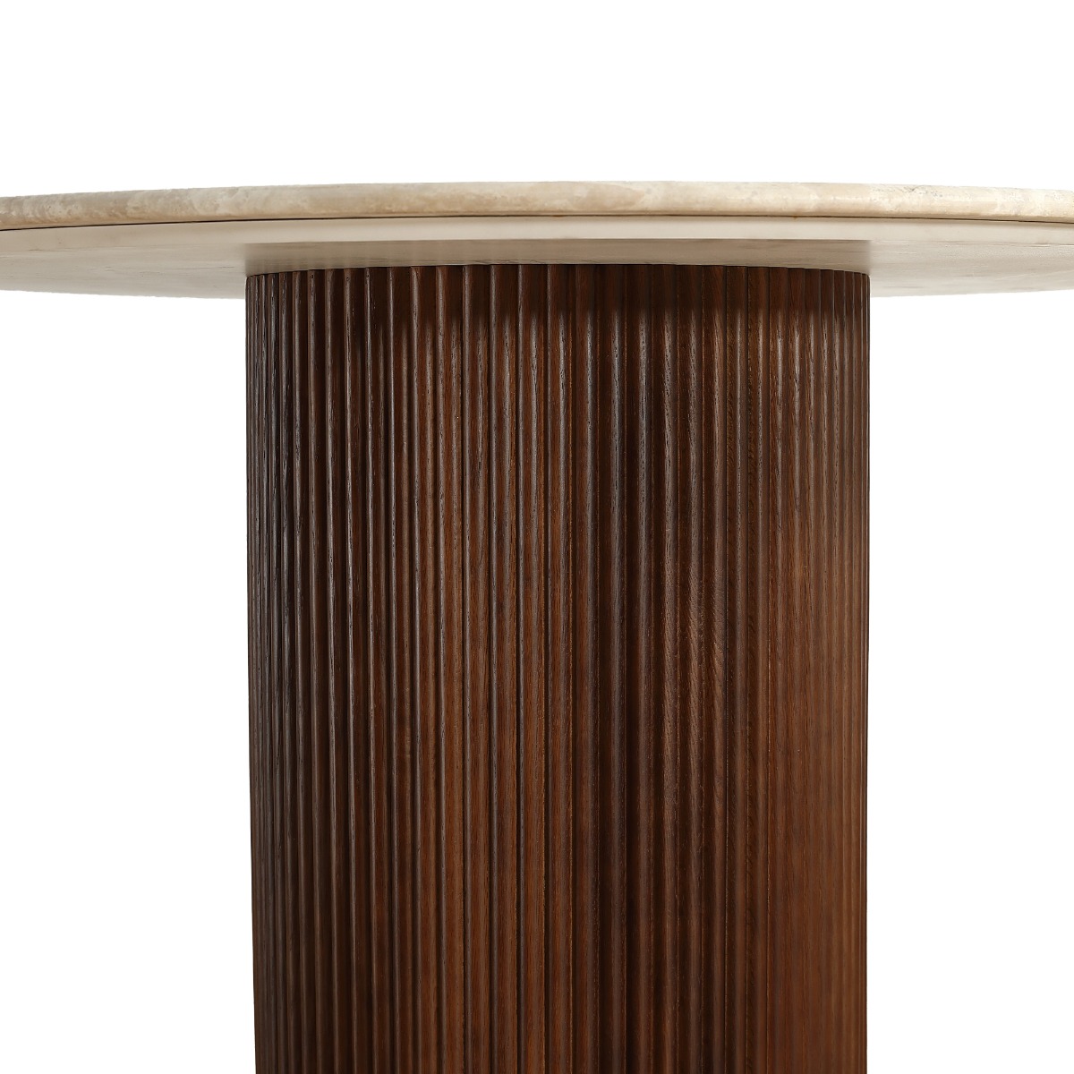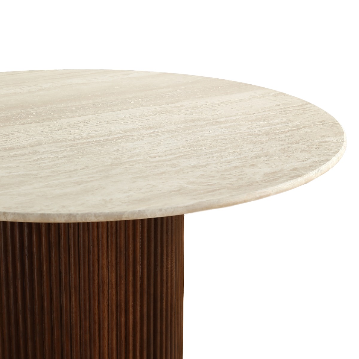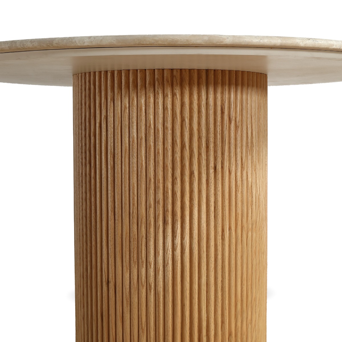 The Oliva 1.1M Round Dining Table brings natural elegance and timeless appeal to your dining space. Crafted from 100% natural travertine with a 17mm honed (semi-filled) finish, the tabletop showcases unique textures and earthy tones—no two tables are the same.