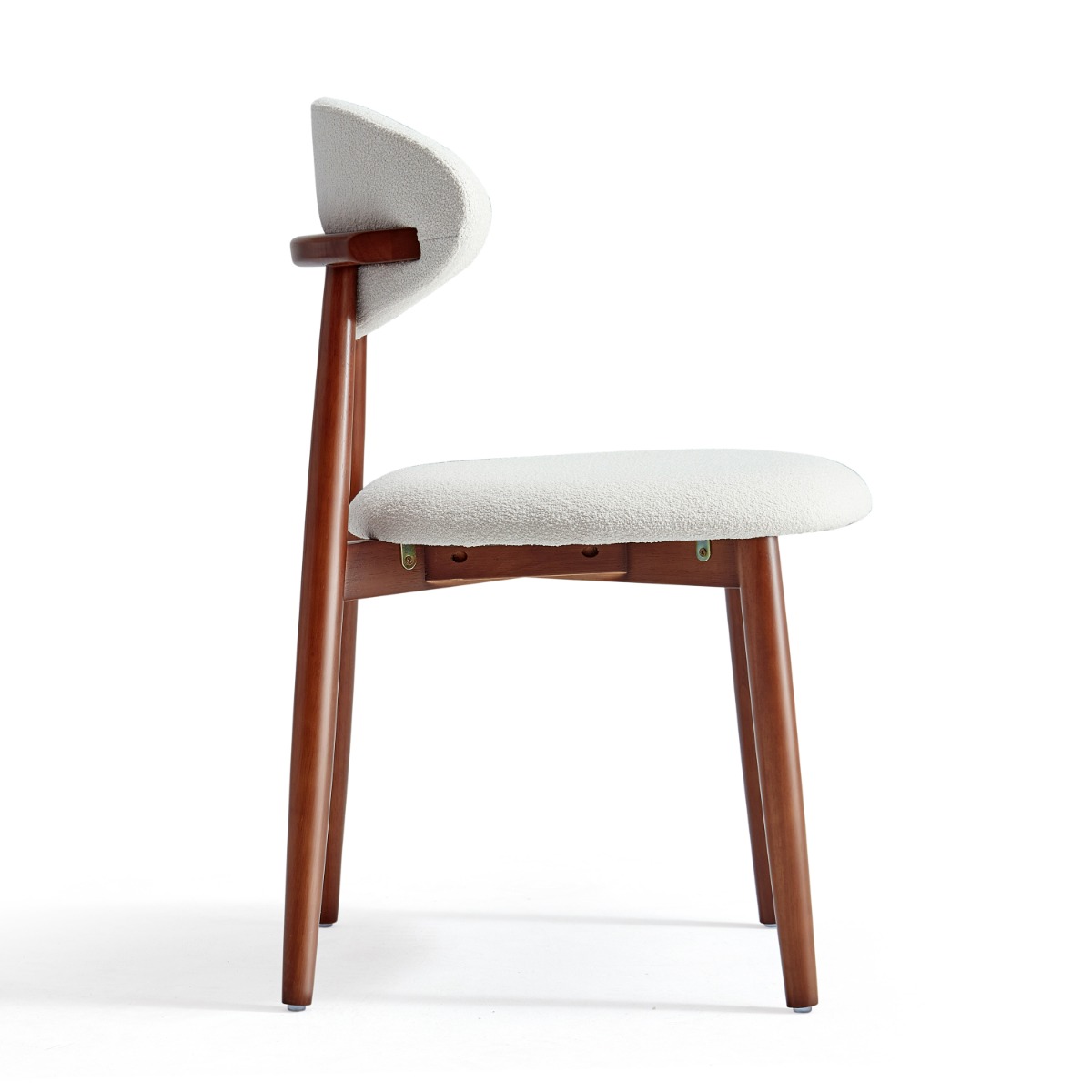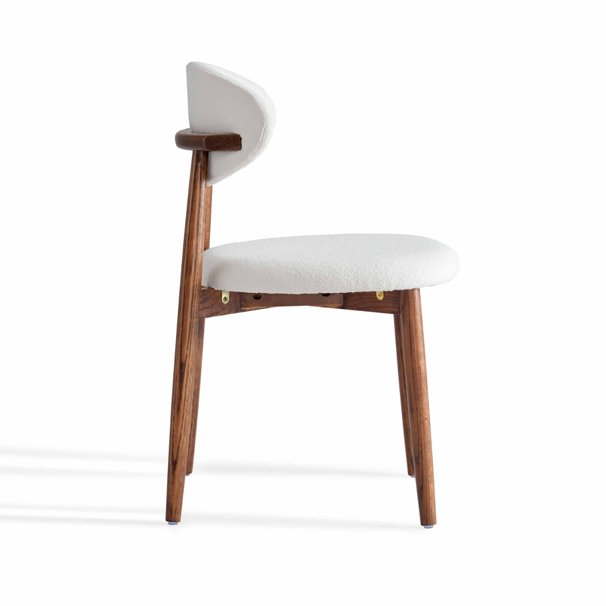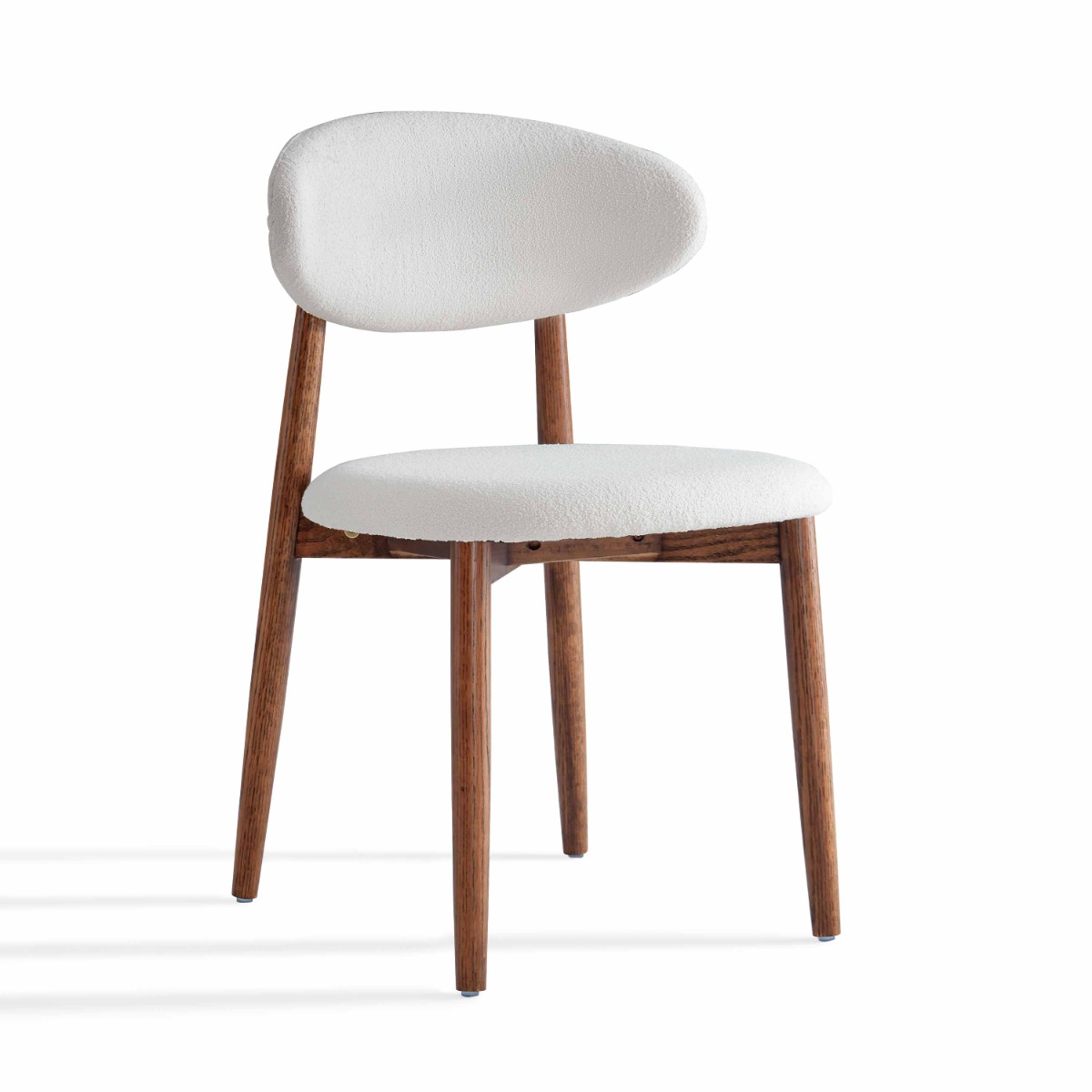 The Onnan Sherpa Dining Chair blends comfort, durability, and style in a clean, modern silhouette. Its seat and backrest are upholstered in soft, nubby textured flannel fabric, paired with an ergonomically arched back for added support during extended seating.