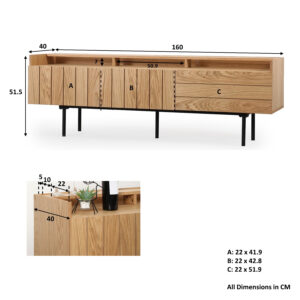The Reiki TV Console brings modern function and form to your living space. Made from 15mm MDF with a warm oak veneer and supported by contrasting black legs, it adds a clean, contemporary look to any entertainment setup.
