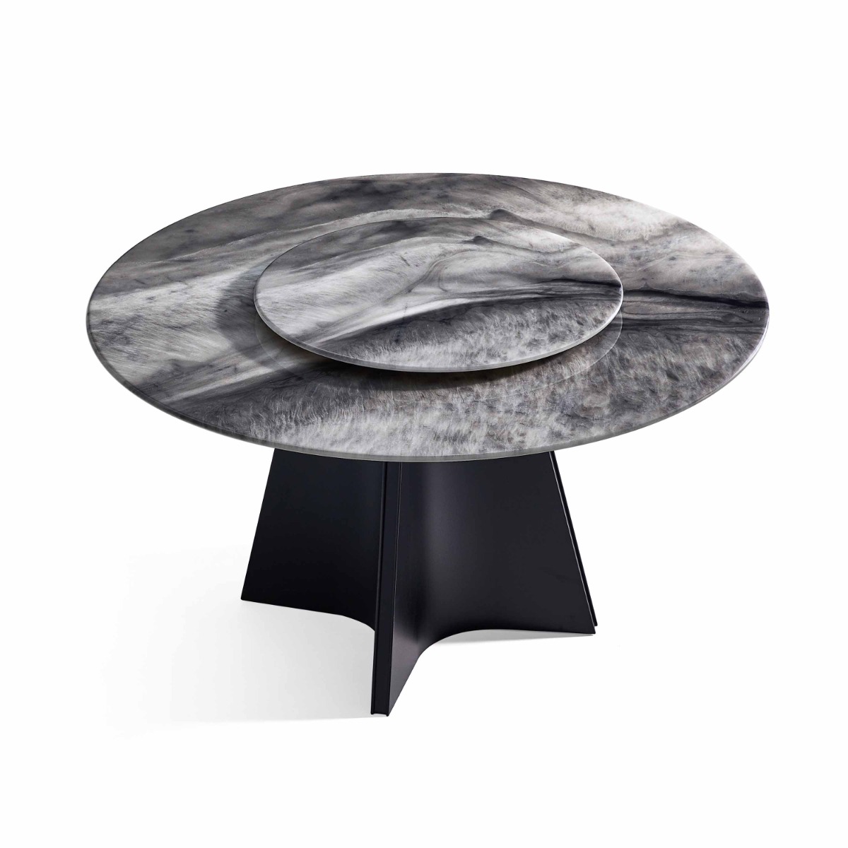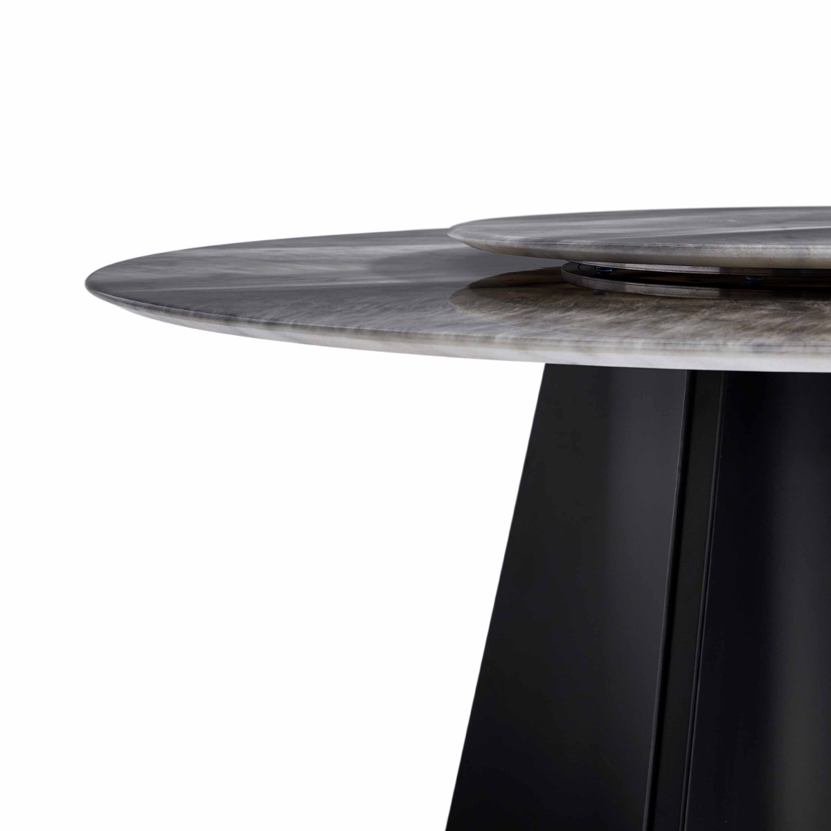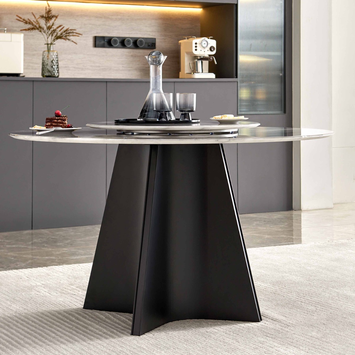 Designed for everyday use, it includes a removable 360° rotating Lazy Susan for added convenience. The round shape promotes smooth space flow, making it ideal for 4–6 diners. A perfect centerpiece for contemporary dining spaces.