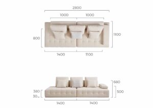 Dimensions: 280 cm (W) x 110 cm (D) x 68 cm (H)