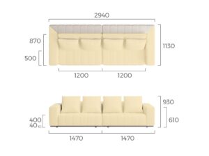 • Dimensions: 294 cm (W) x 113 cm (D) x 93 cm (H)