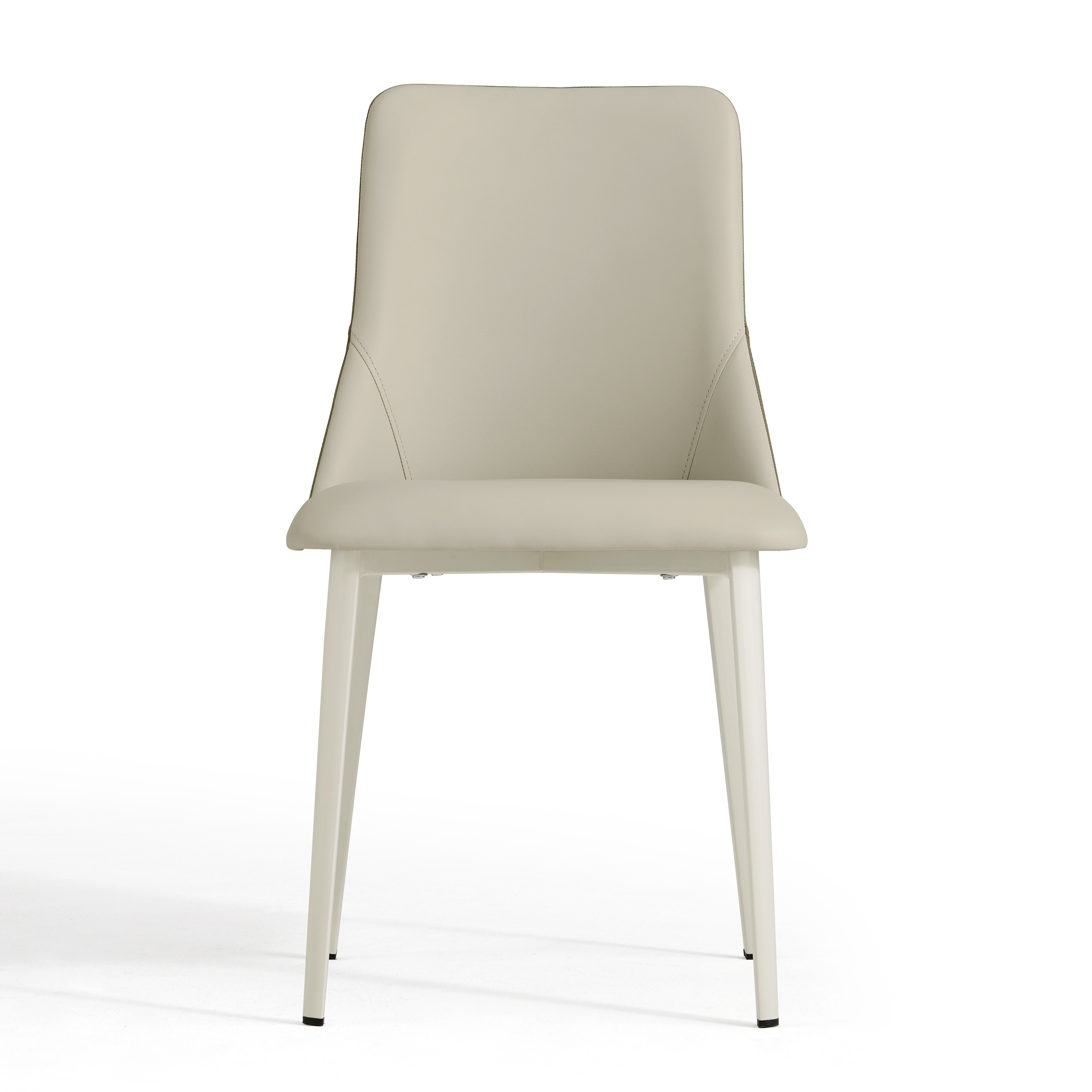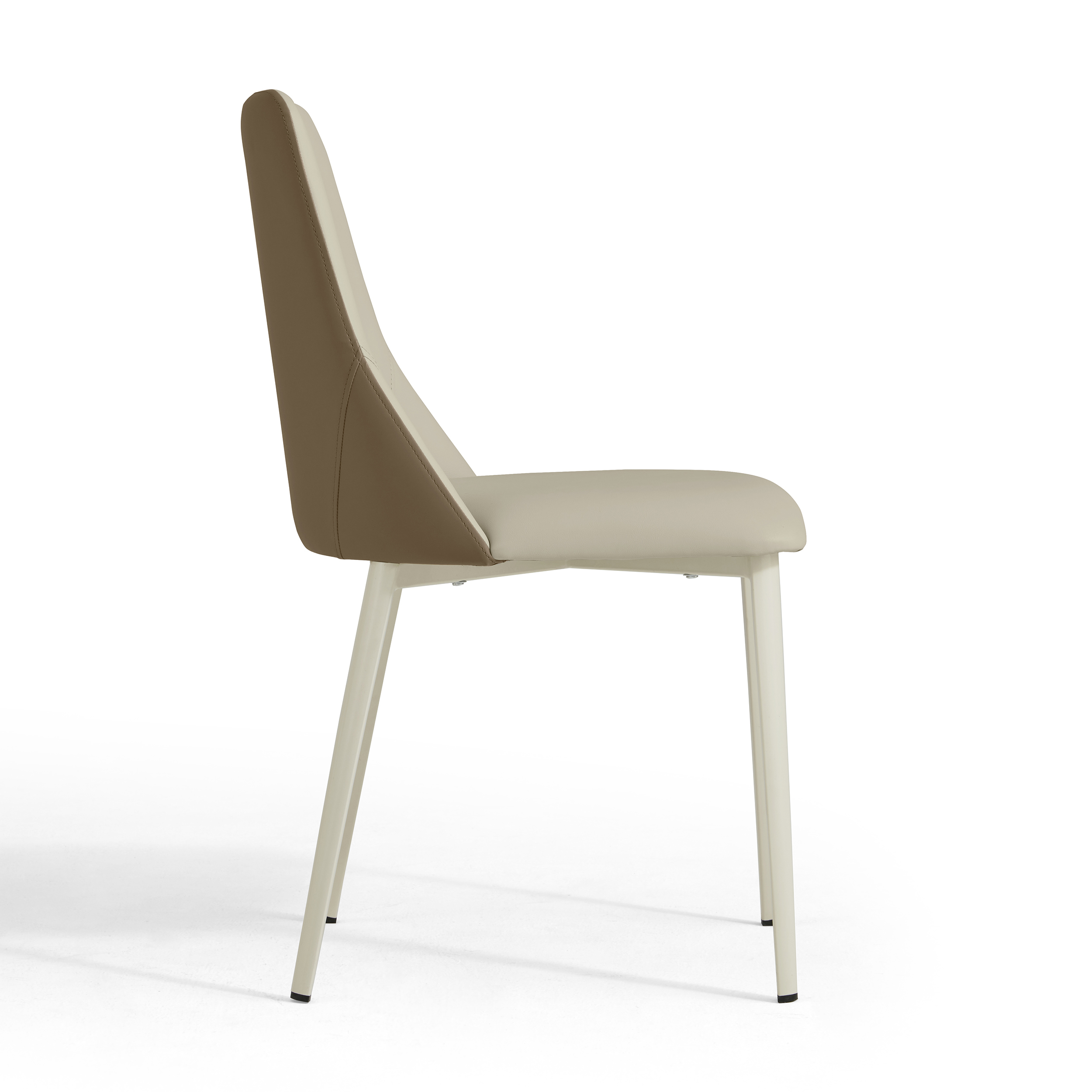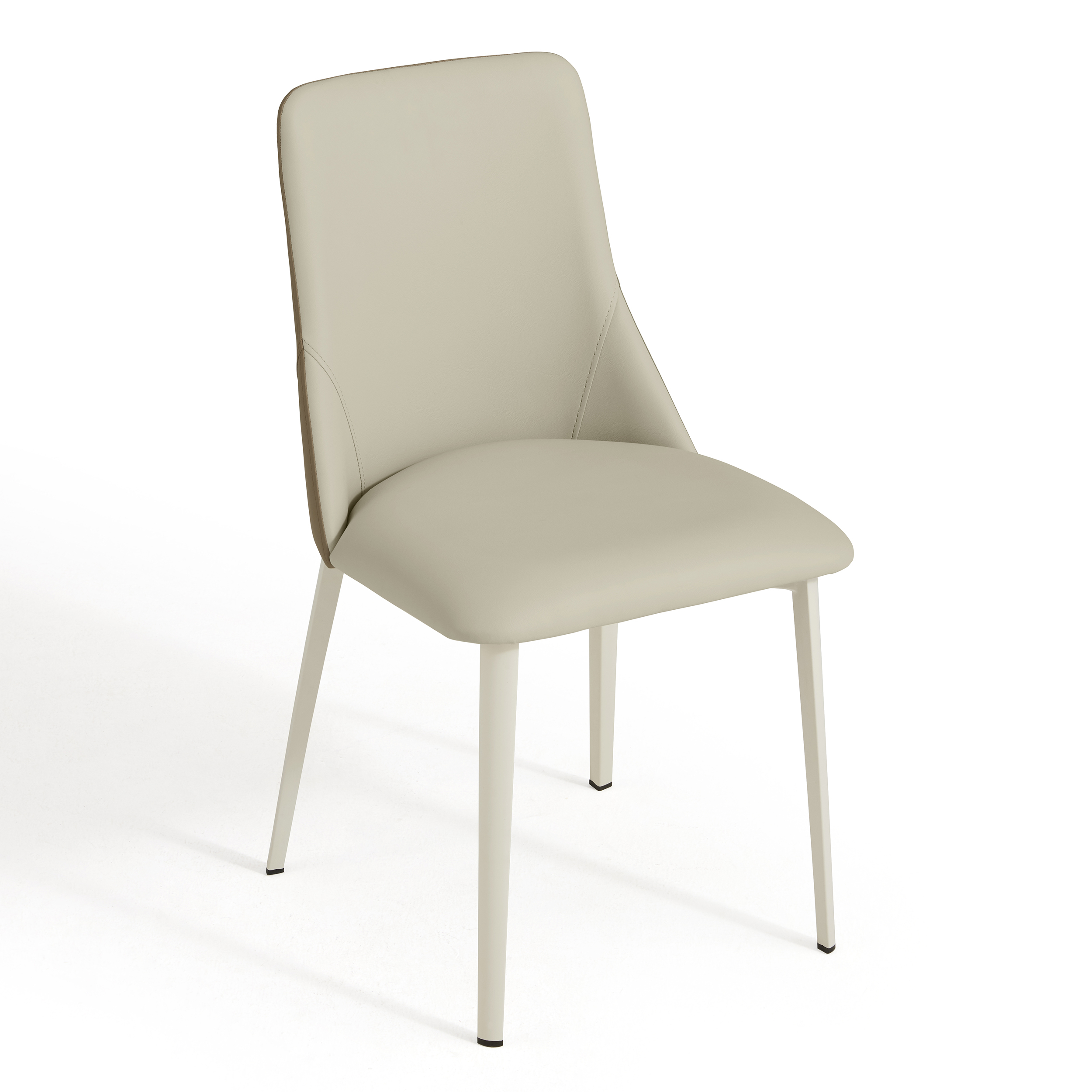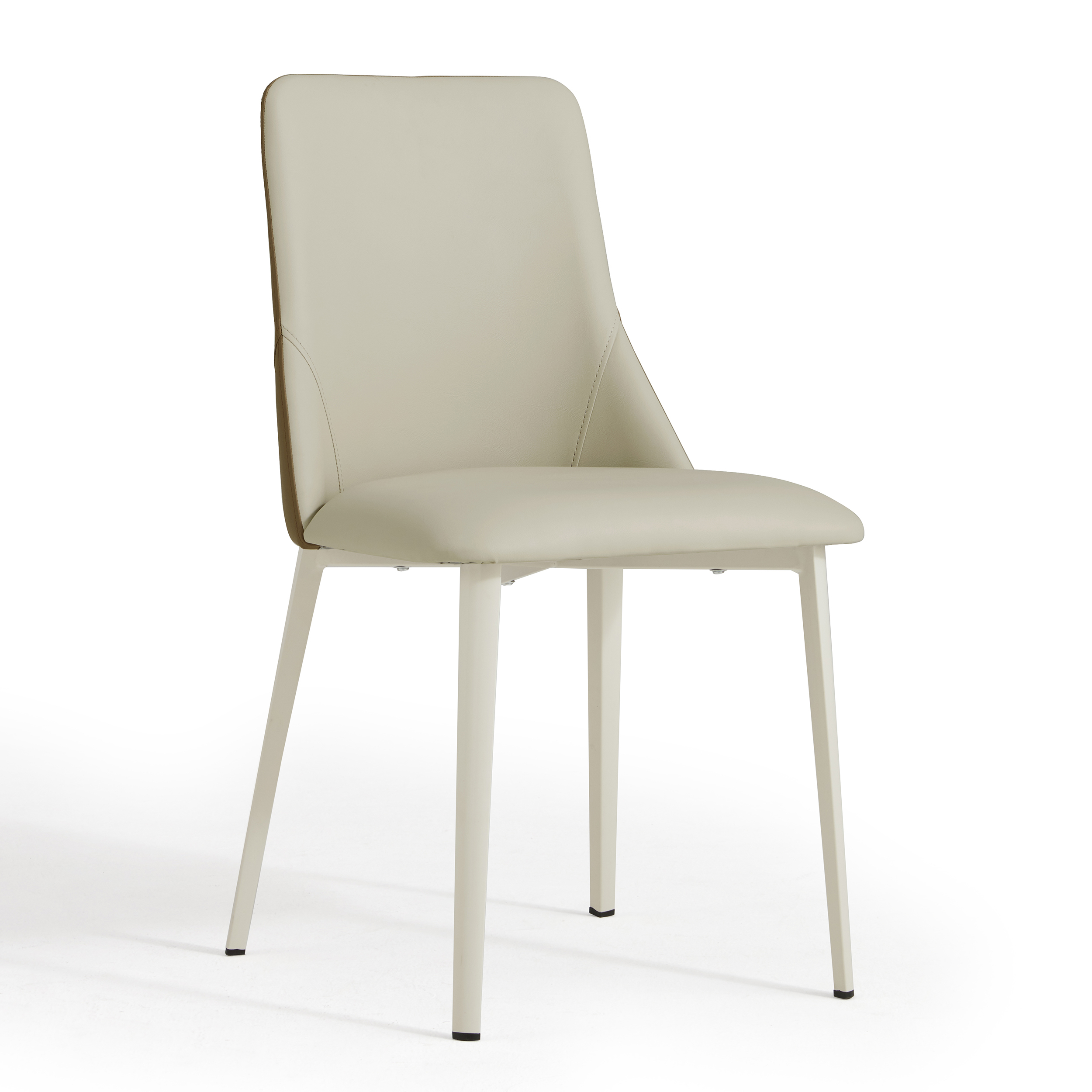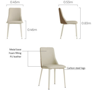 The Sandrine Dining Chair offers a sleek, modern look with everyday comfort. Upholstered in smooth PU leather and padded with soft foam, it delivers a luxurious feel with ergonomic support. The slightly curved backrest promotes comfortable seating even for long hours.