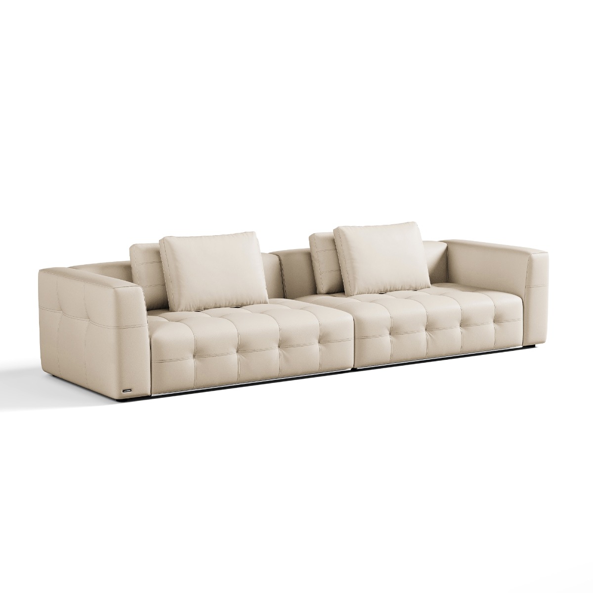 At 280 cm wide, the Senka comfortably fits four adults while maintaining a sleek profile. Its seat height of 41 cm and seat depth of 52 cm strike a balance between relaxation and ergonomic support. Back cushions are removable for easy maintenance, while seat cushions and covers are fixed for a clean, structured silhouette.