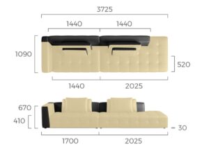 W: 372.5 cm × D: 109 cm × H: 67 cm