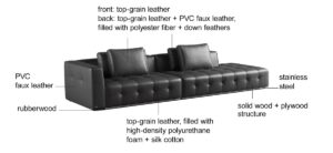 Top grain cowhide leather covers all high-contact areas, offering durability and a rich look. Faux leather wraps secondary sections for a seamless, cost-effective finish.