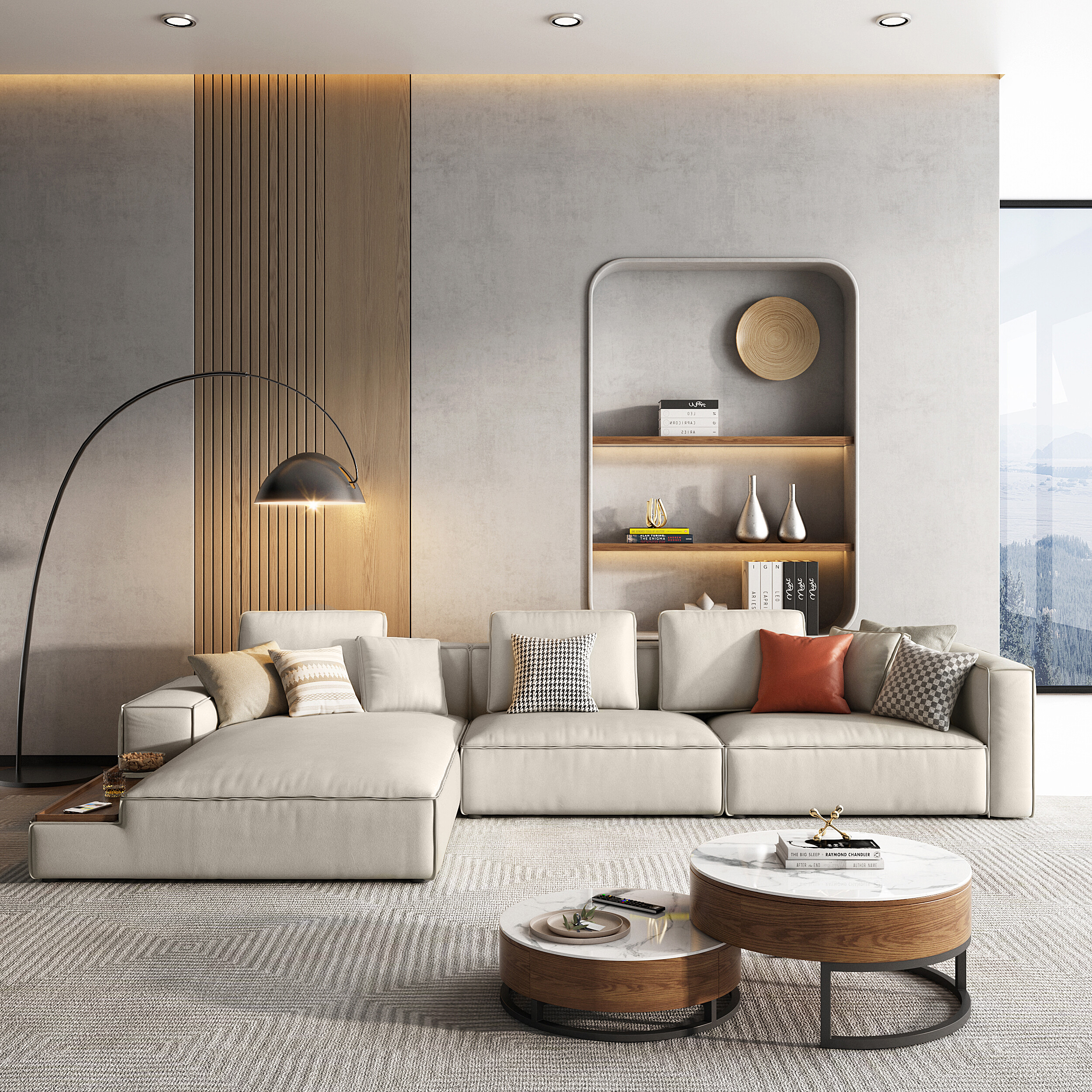 Built on a sturdy solid wood inner frame, this sofa is padded with a mix of 3cm latex, high-density foam, and plush down feather + polyester fibre for lasting support and softness. Its low-profile seating adds a sleek aesthetic while visually enlarging your space — great for rooms with lower ceilings.