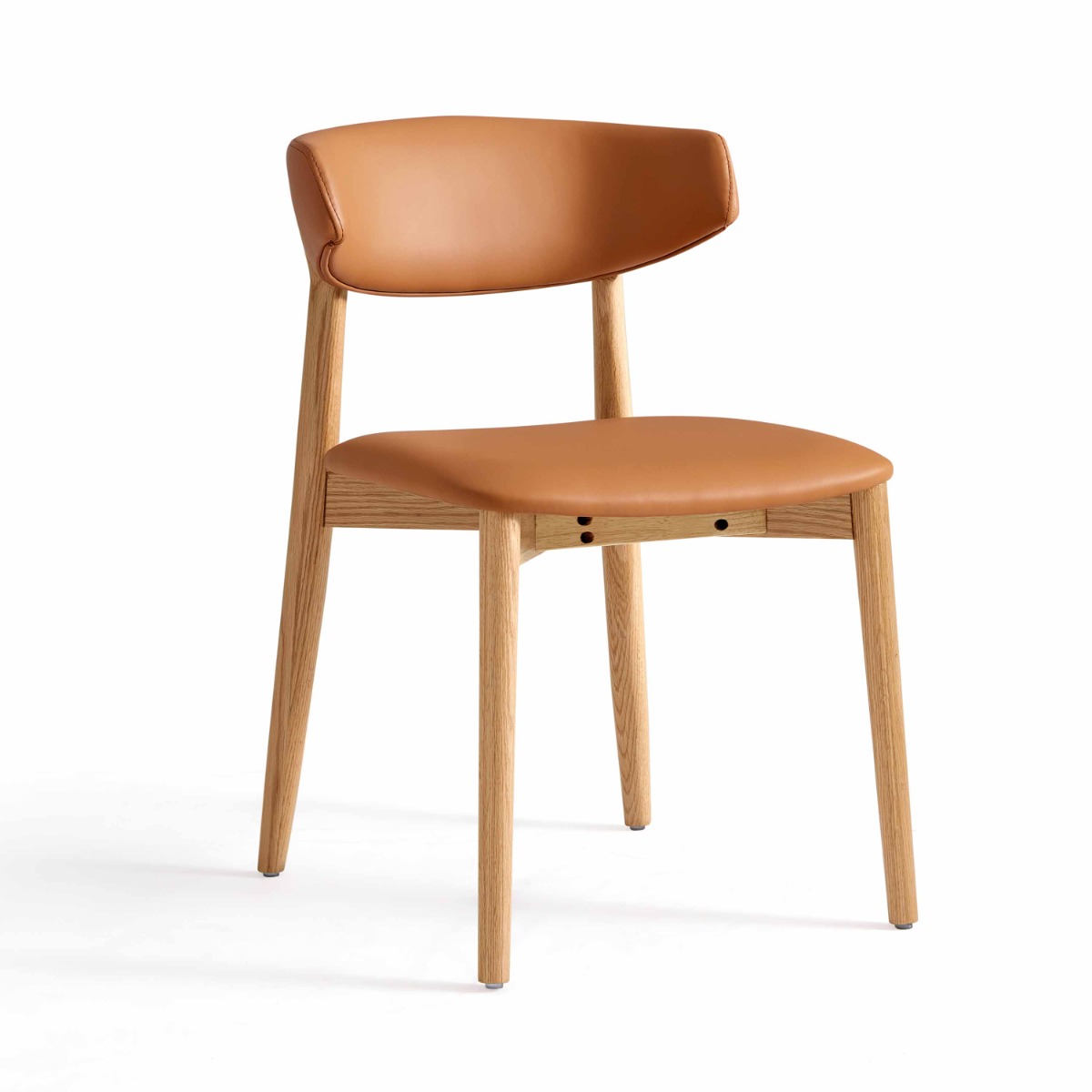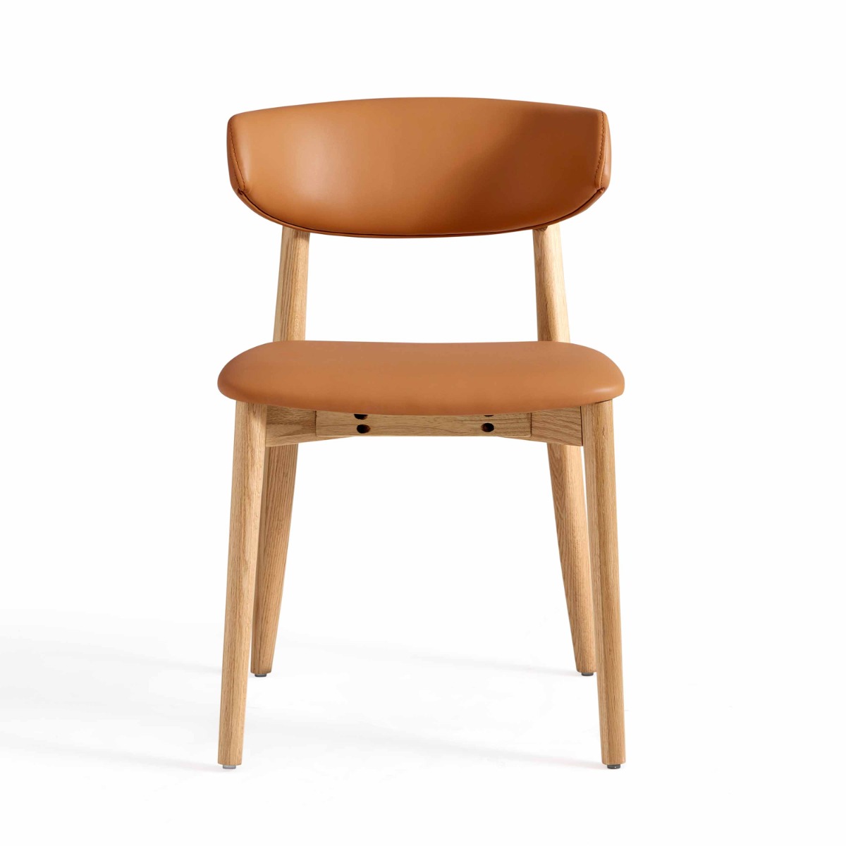 Upholstered in premium EPU eco-leather, the chair offers a soft, flexible, and easy-to-clean surface. A semi-circular backrest gently supports your back, while the high-density sponge filling resists sagging for long-term comfort. The slightly inclined backrest enhances ergonomic support, making the Vance ideal for long meals and gatherings.