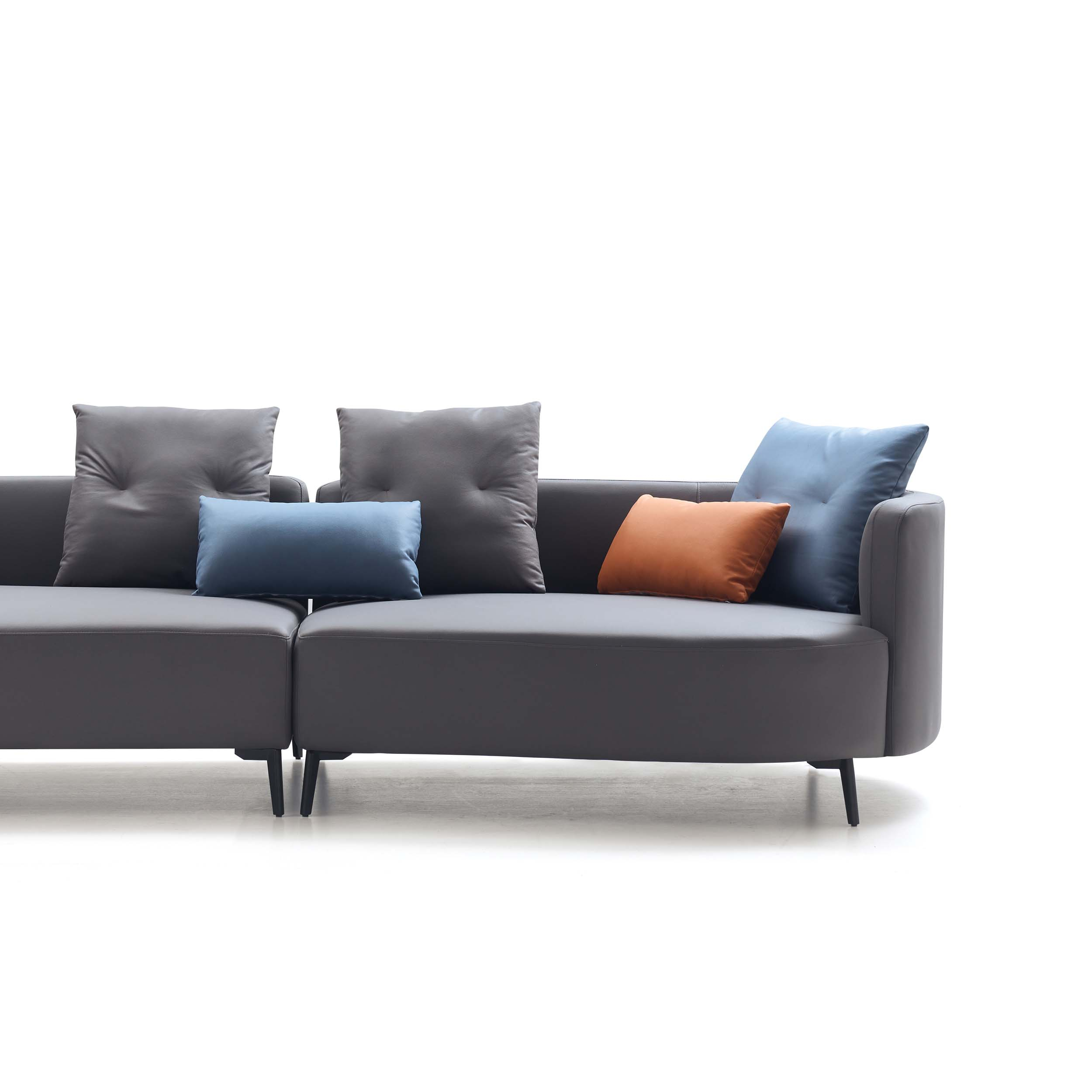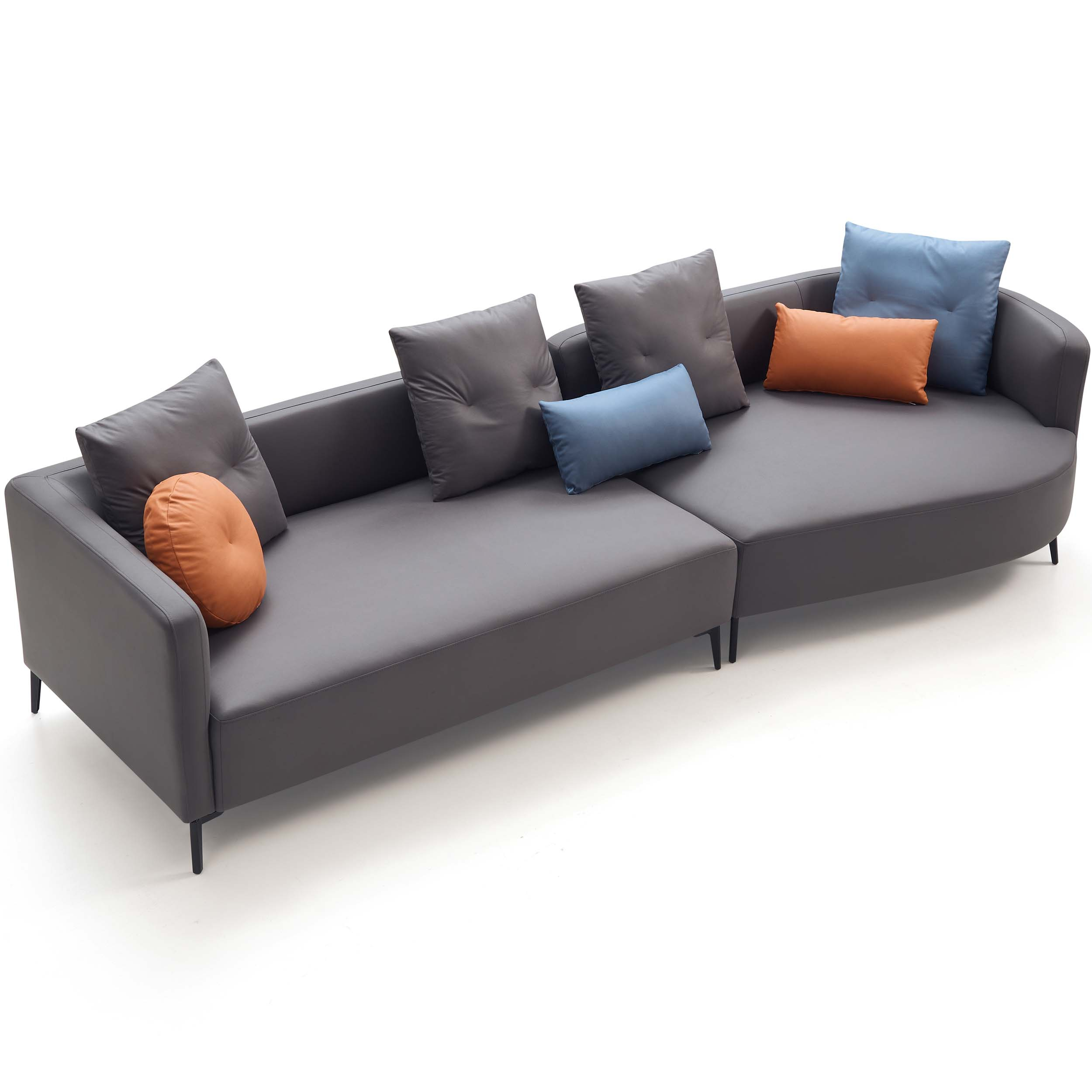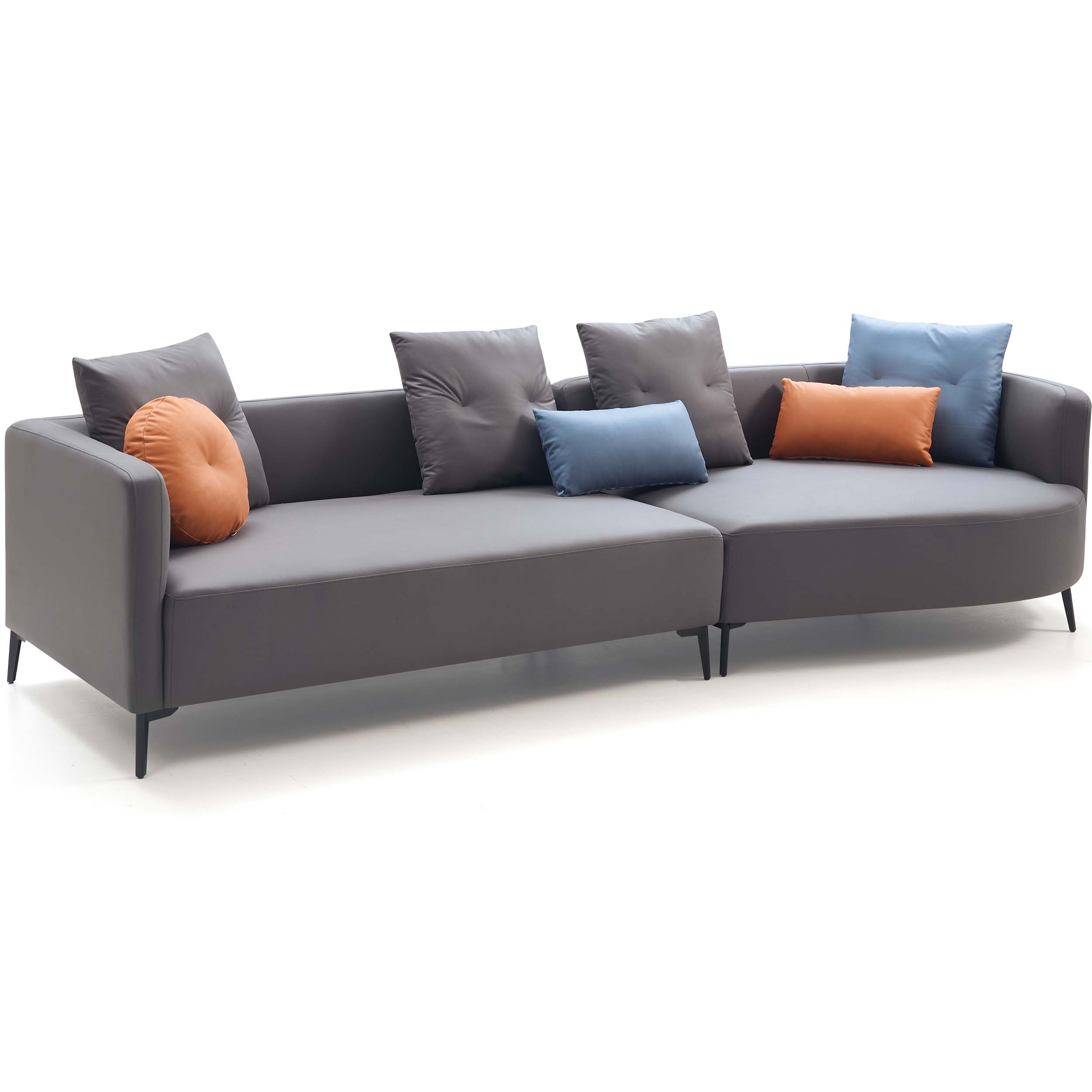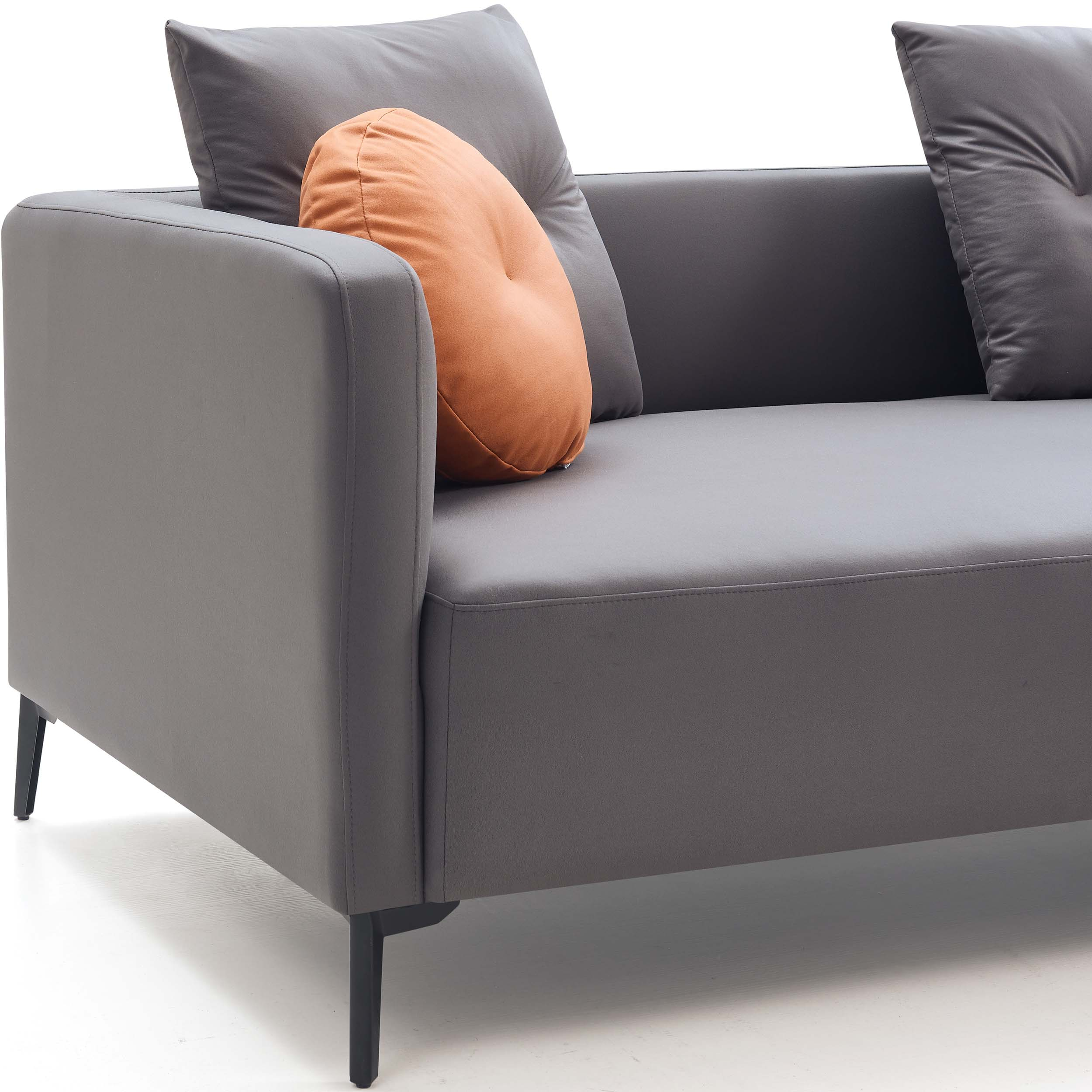 Modern and spacious 4-seater sofa with a left chaise, crafted from durable eucalyptus wood and breathable leathaire. Features firm, supportive seats, medium-soft backrests, and moisture-resistant upholstery, all elevated on sleek carbon steel legs. Throw cushions included.