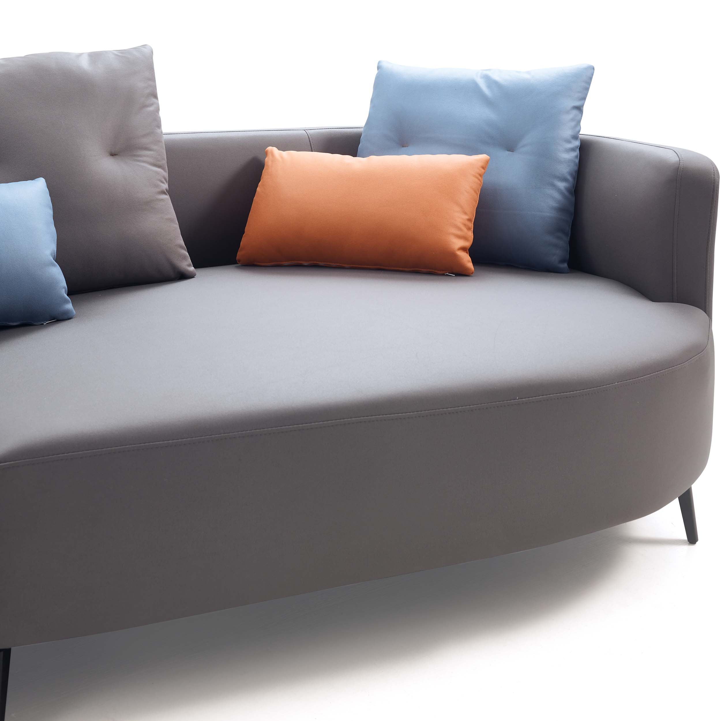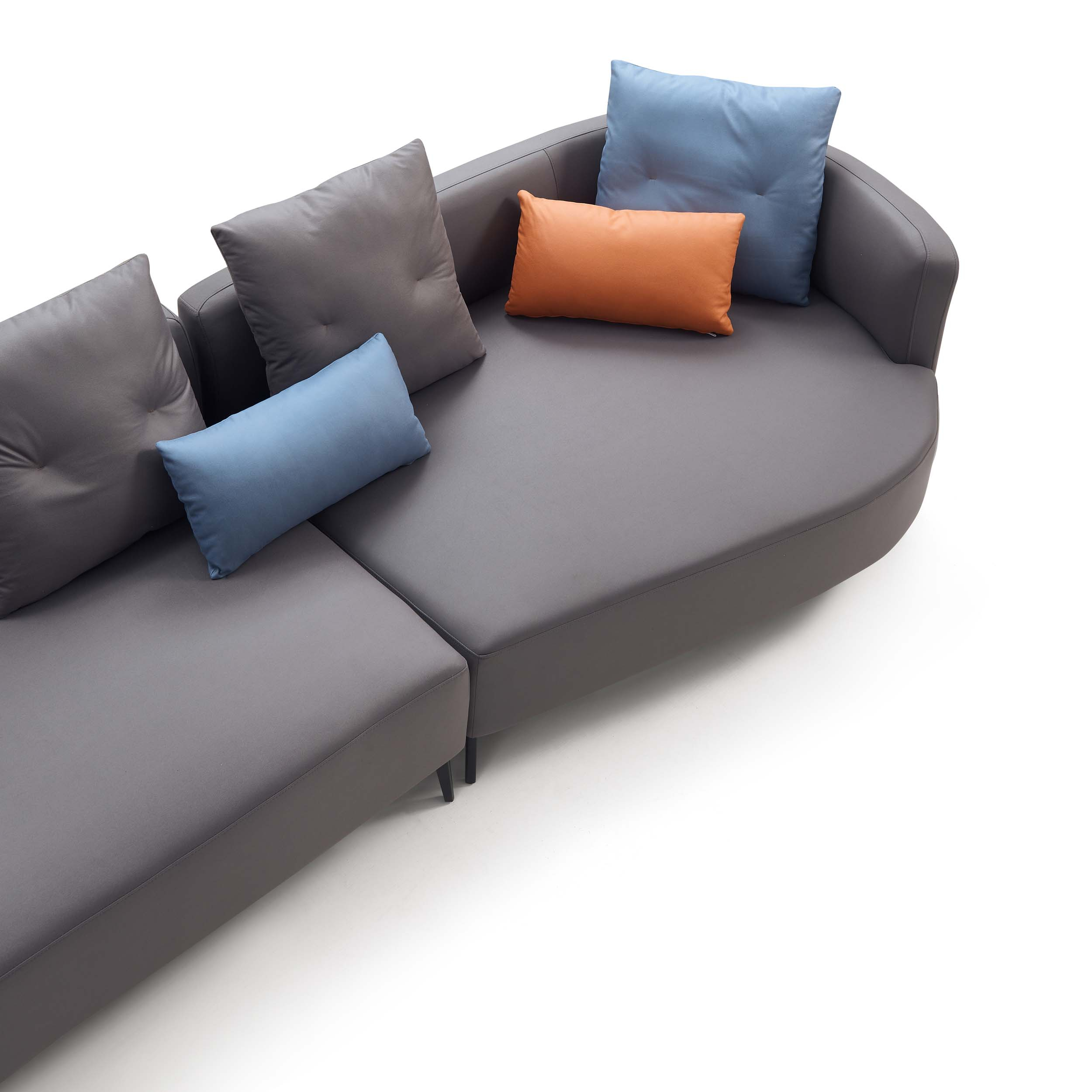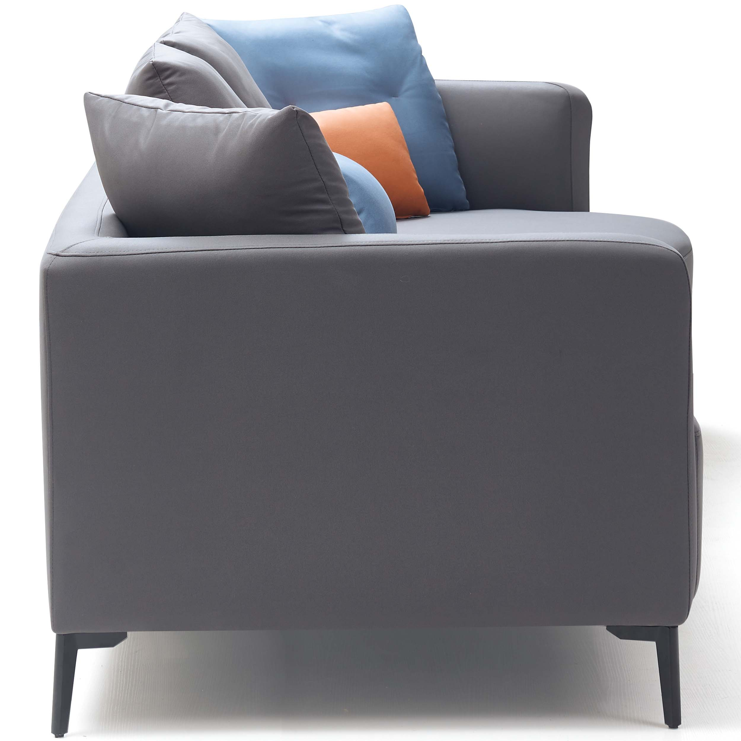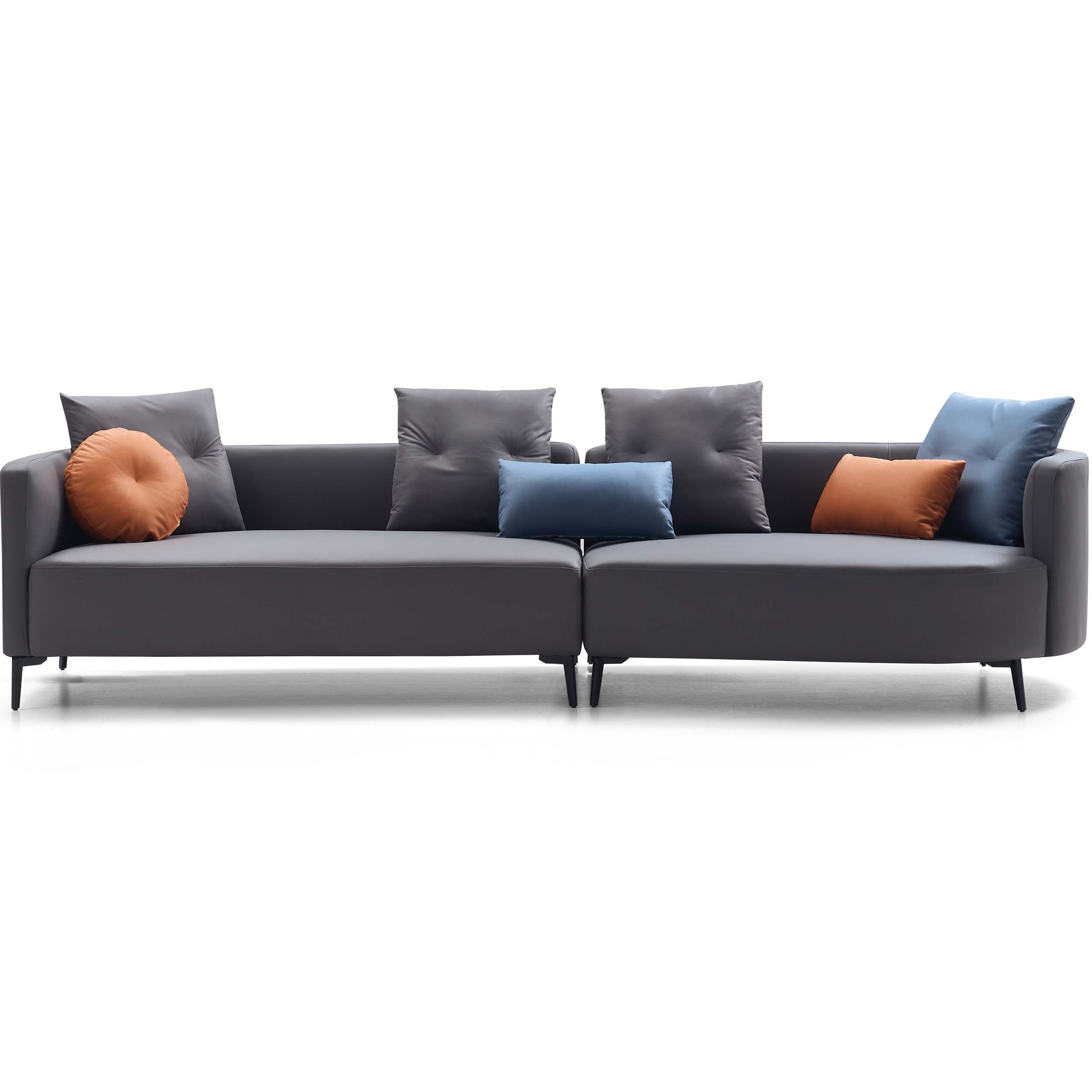 Modern and spacious 4-seater sofa with a left chaise, crafted from durable eucalyptus wood and breathable leathaire. Features firm, supportive seats, medium-soft backrests, and moisture-resistant upholstery, all elevated on sleek carbon steel legs. Throw cushions included.