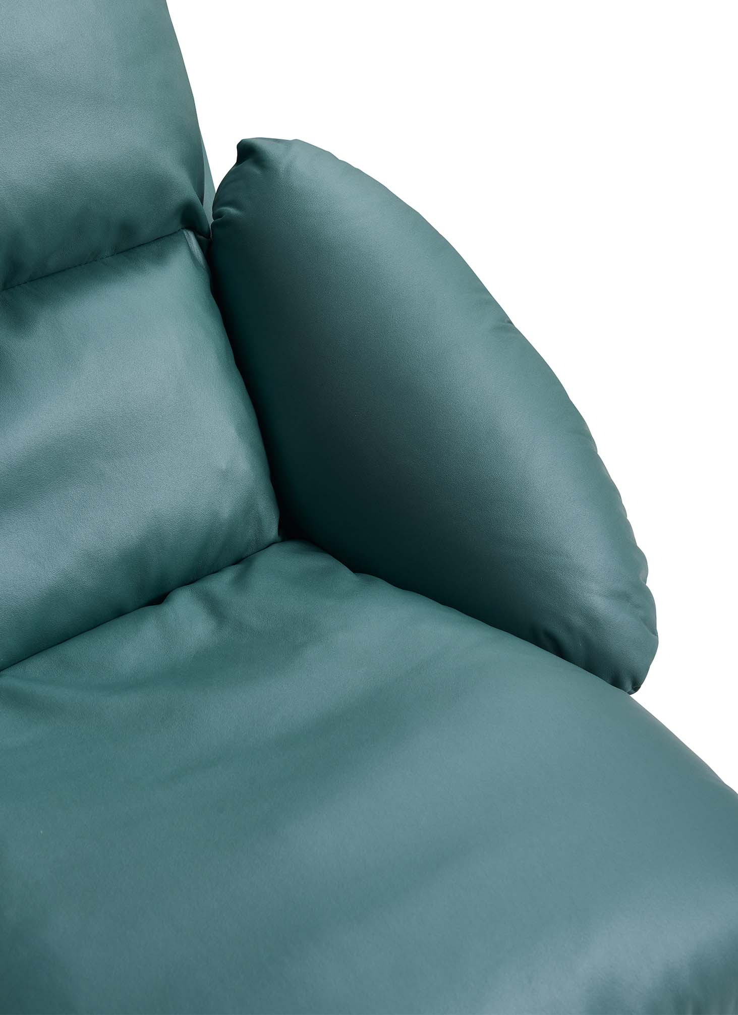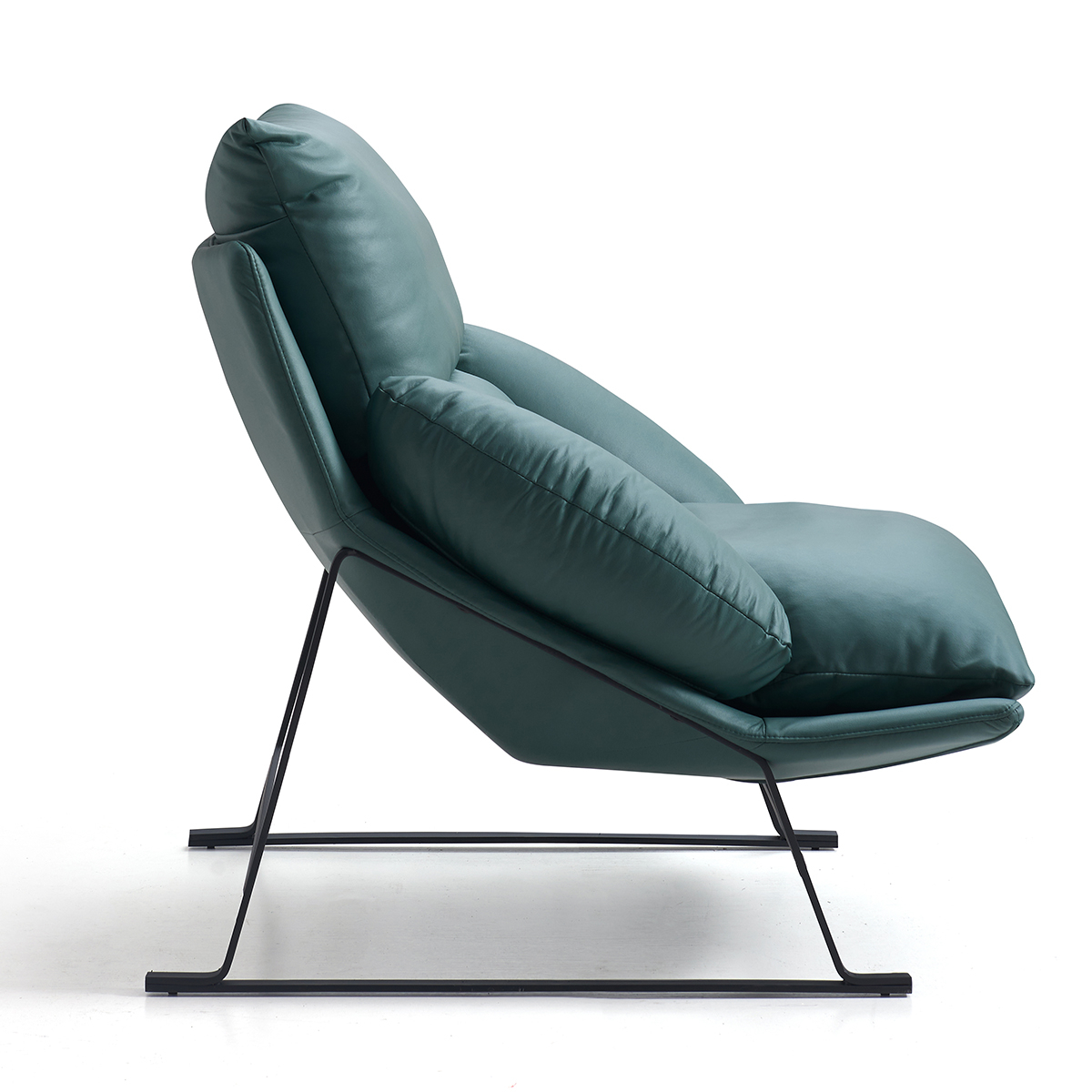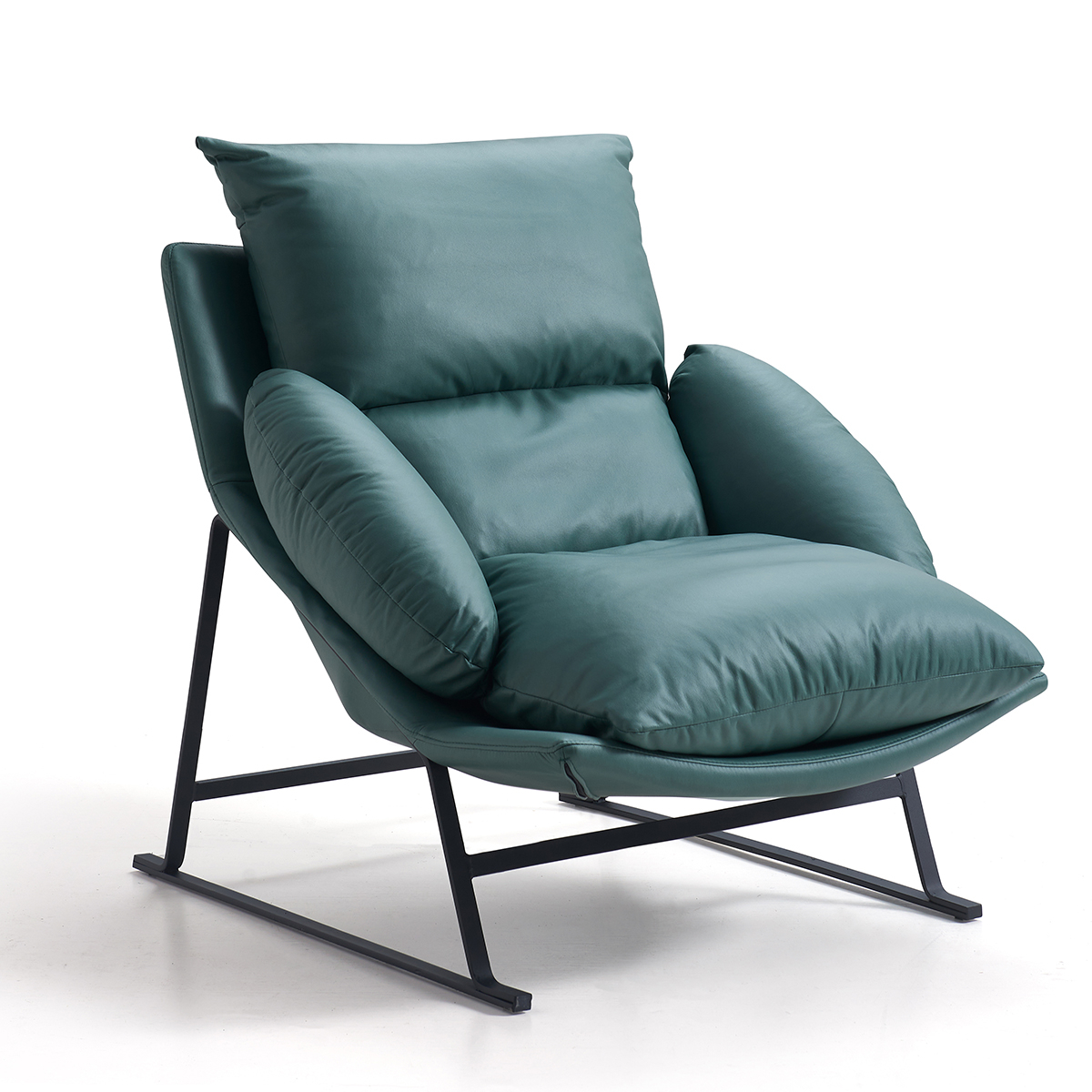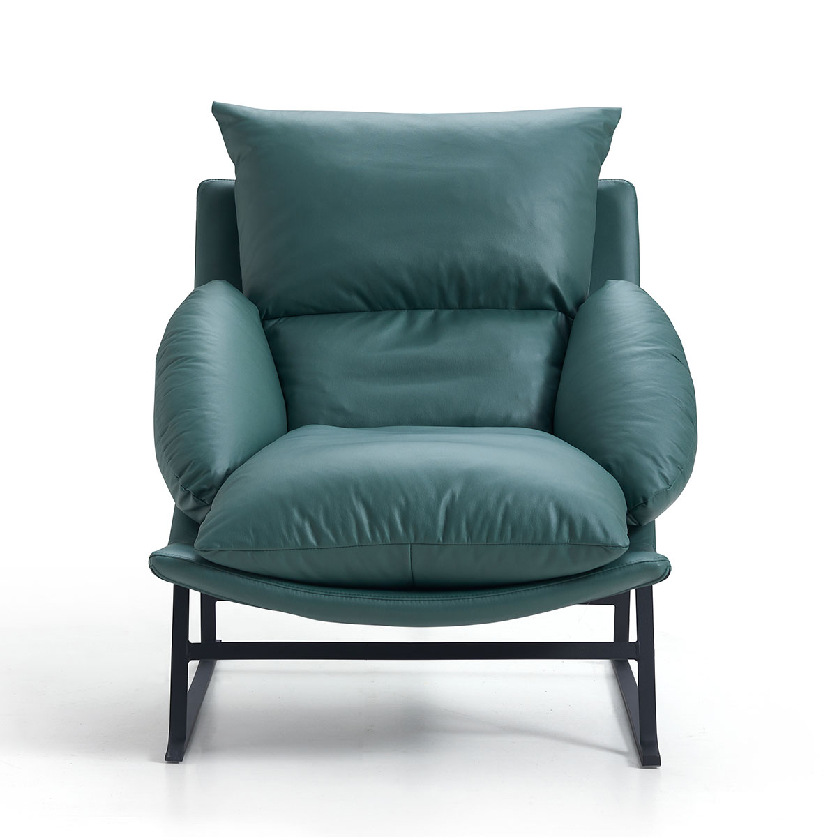 Upholstered in Leathaire, a breathable synthetic material that mimics leather, the chair stays cool, is moisture-proof, scratch-resistant, and easy to maintain. Its down-feather and polyester fibre filling provides a soft, cosy seat with medium firmness — perfect for relaxed lounging.