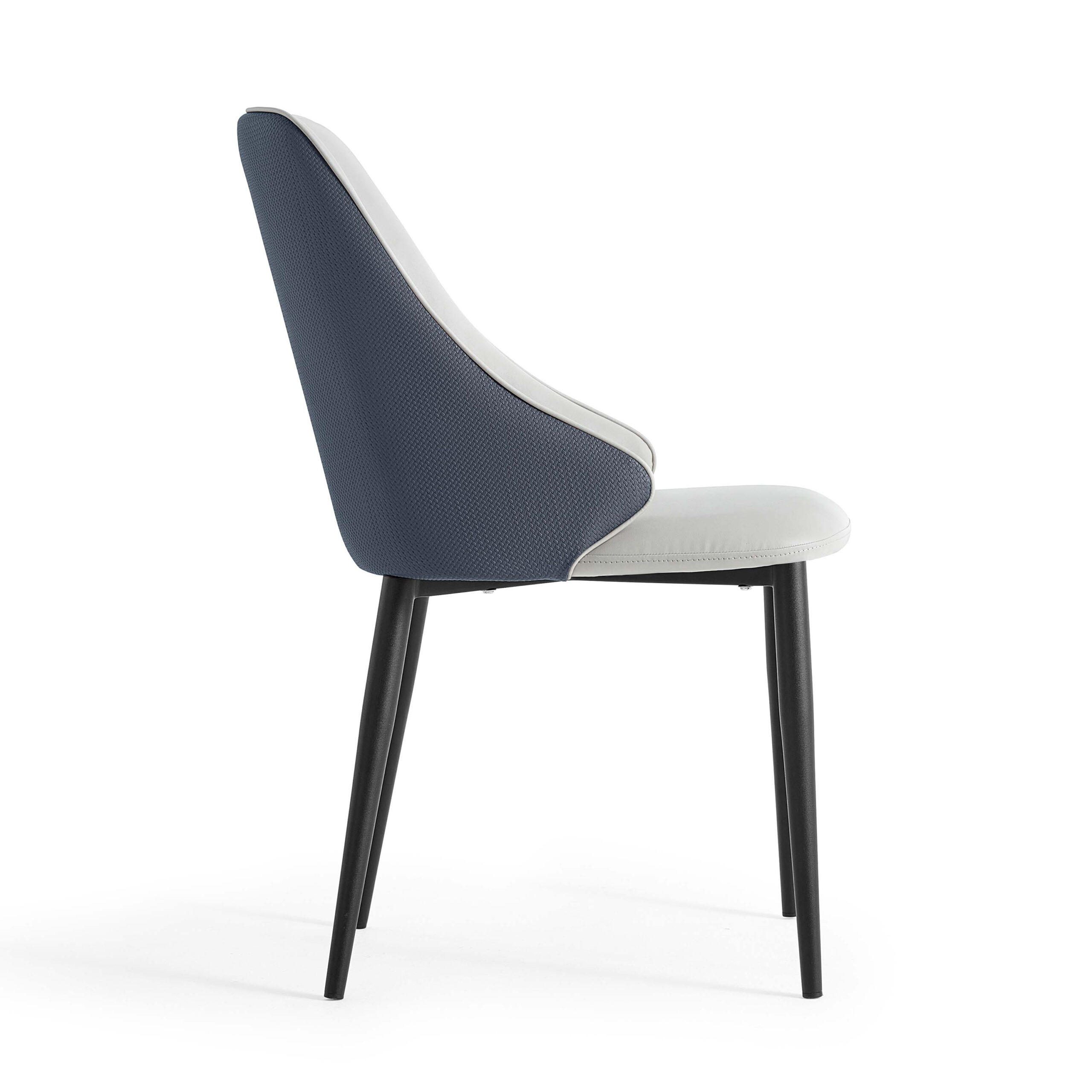 The Yalene Chair in GreyBlue combines comfort and contemporary style. Upholstered in smooth-touch faux leather with foam filling, it offers a soft yet supportive seat. A gently curved backrest provides added comfort, making it ideal for extended sitting.