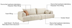 Seats are filled with high-density foam and latex, offering medium-soft comfort (6/10 firmness) and better shape retention over time. The backrest is filled with polyester fibre for a soft, cushioned feel (5/10 firmness).
