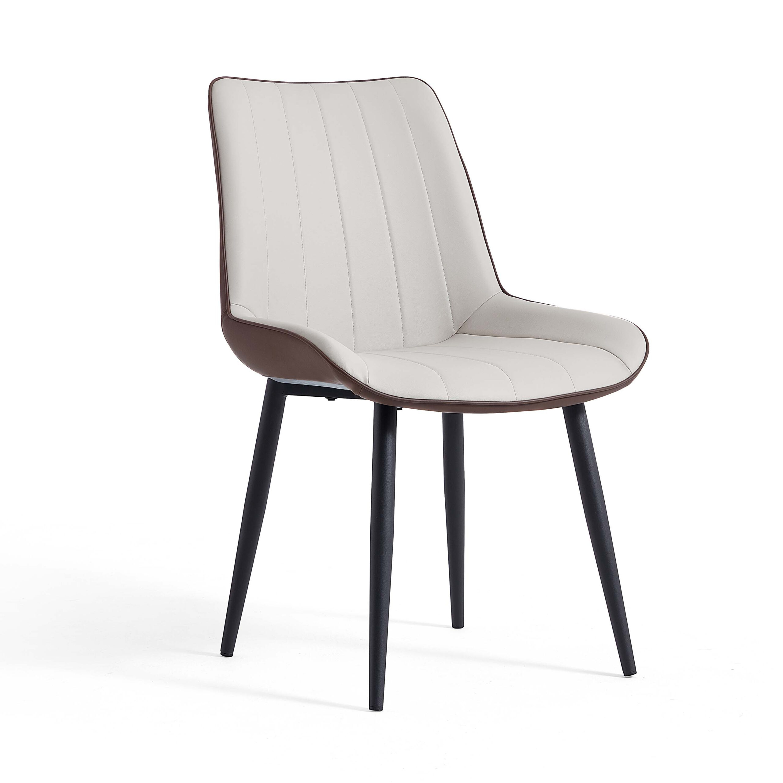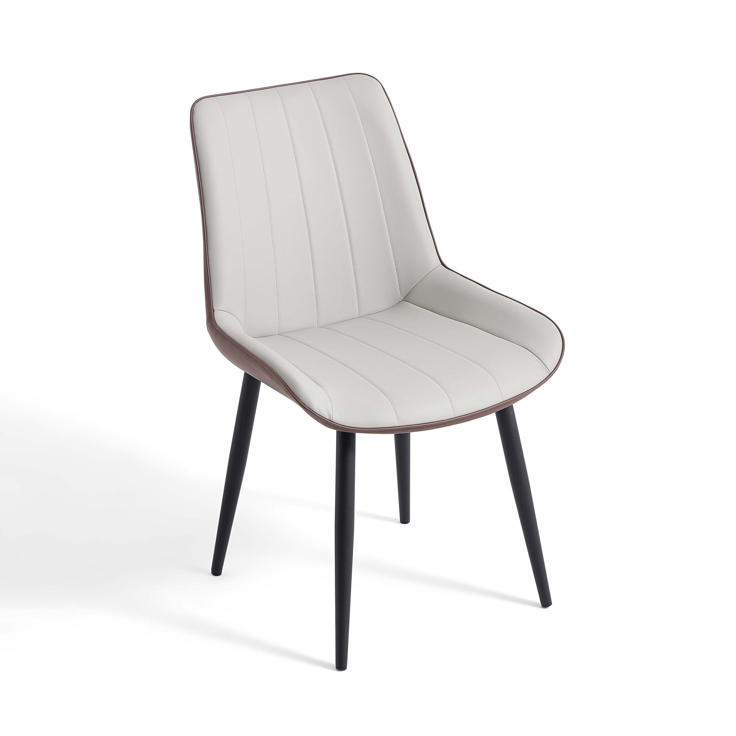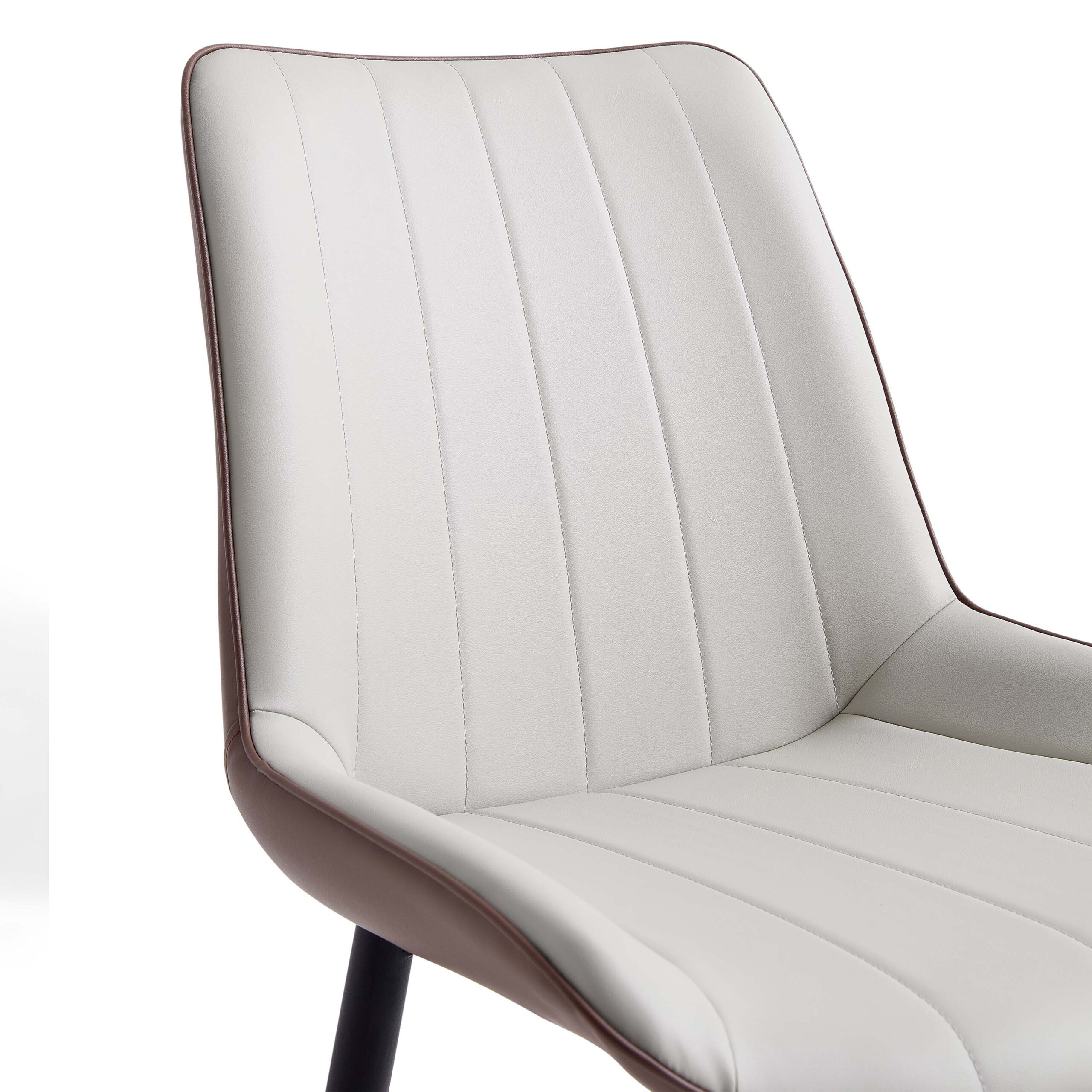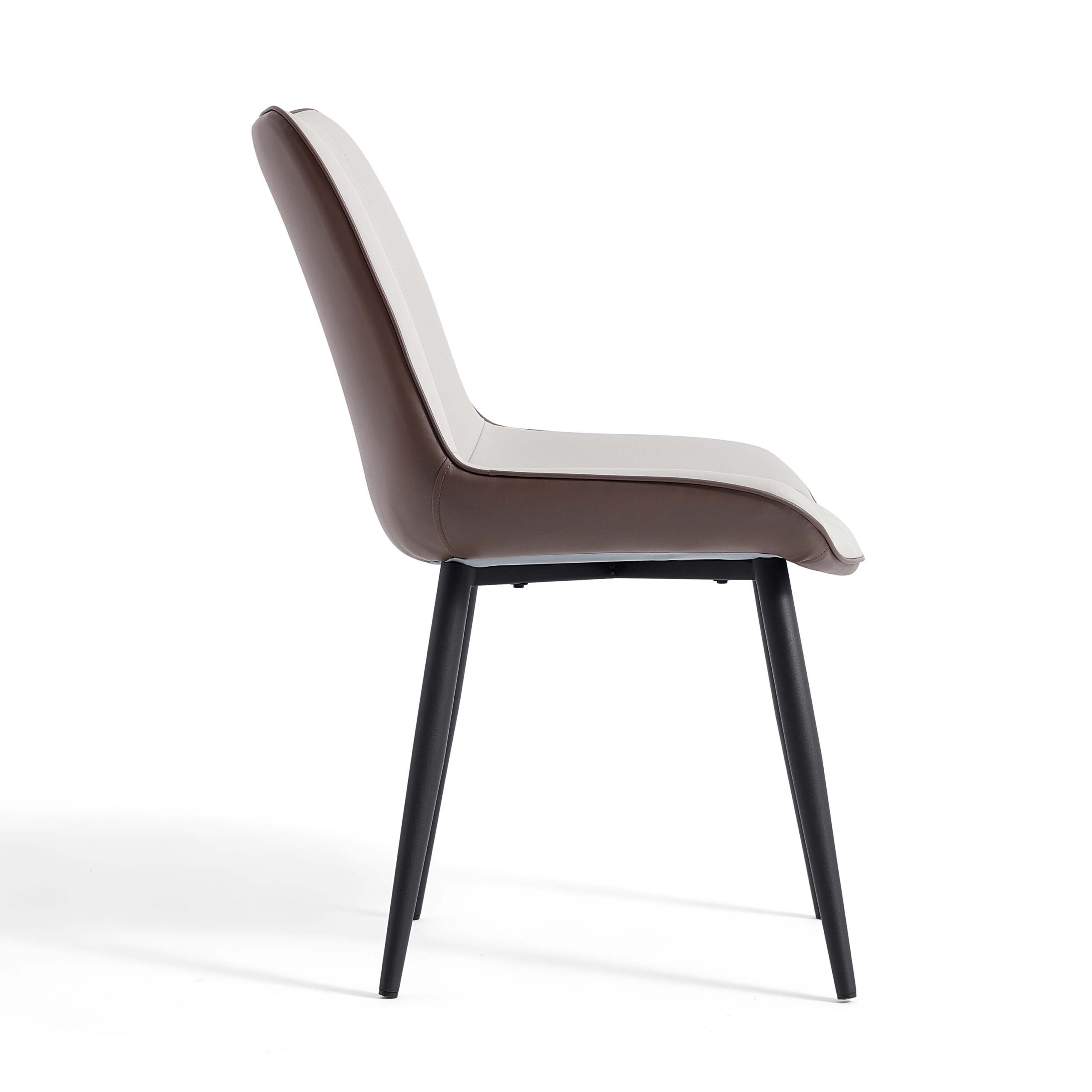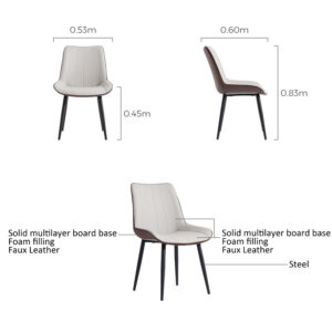 The Yura Faux Leather Dining Chair in GreyBrown offers a sleek design with lasting comfort. Upholstered in smooth-touch faux leather and filled with soft foam, it features a slightly curved backrest for ergonomic support during long hours of sitting.